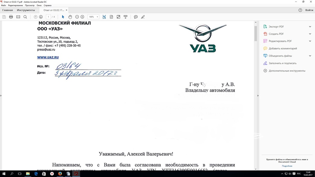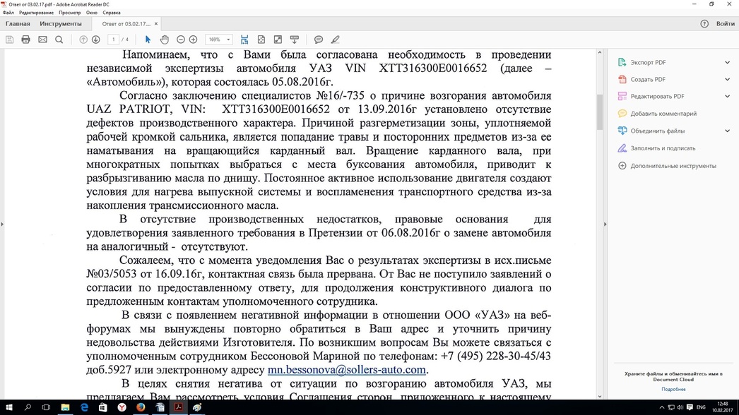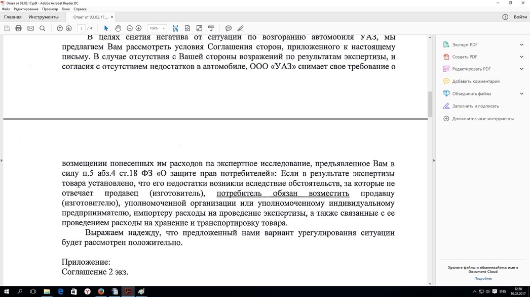 Официальный документ от УАЗ, присланный владельцу пресловутого внедорожника, гласит: «в целях снятия негатива от ситуации по возгоранию автомобиля, мы предлагаем Вам рассмотреть условия Соглашения сторон: в случае отсутствия возражений по результатам экспертизы и согласия с отсутствием недостатков в машине, UAZ снимает свое требование о возмещении понесенных им расходов на экспертное исследование».