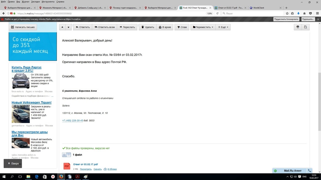 А в ходе телефонных переговоров сотрудники московского филиала ООО «УАЗ» добавили, что подобный исход событий, как уже было сказано, возможен только в случае, если новых упоминаний об инциденте в интернете не последует, и будут удалены предыдущие.
