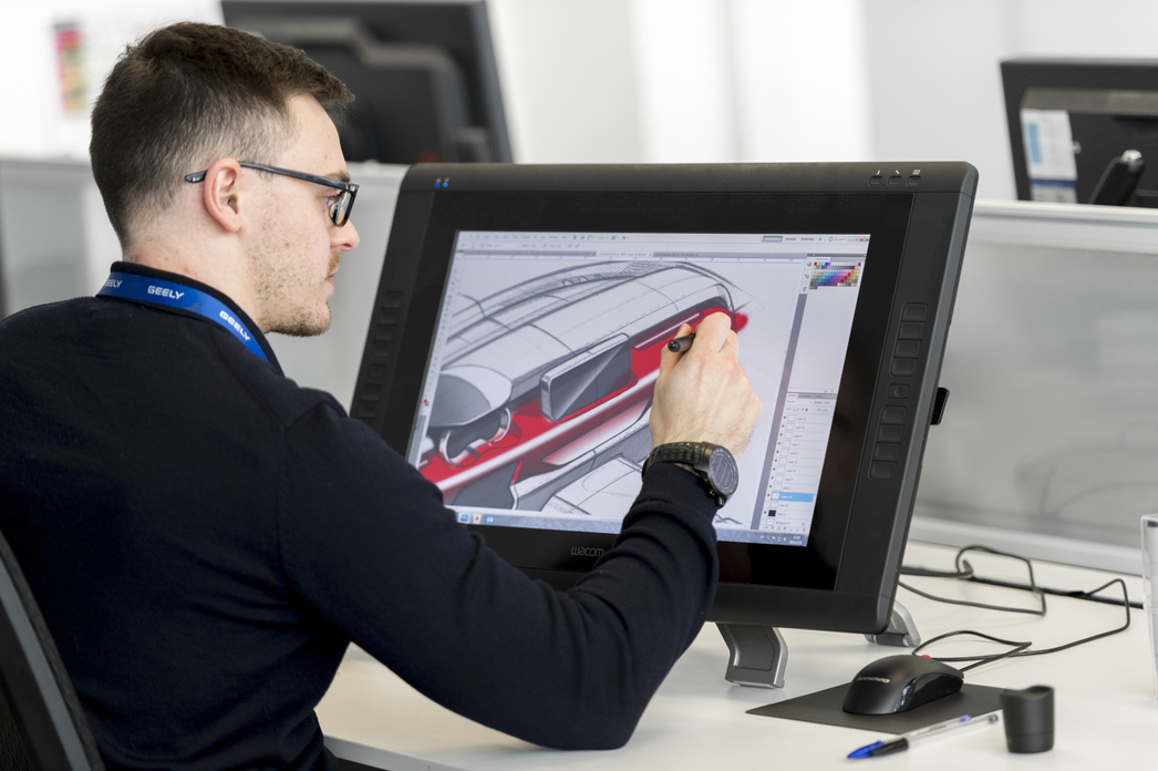 На первом этапе дизайнеры Geely неспешно проектируют экстерьеры и интерьеры автомобилей на компьютере. Несколько минут, стоя за спиной молодого специалиста, я наблюдала, как он скрупулезно прорисовывает салонный дефлектор — крутит-вертит деталь и так, и сяк; меняет цвета; корректирует толщину линий.