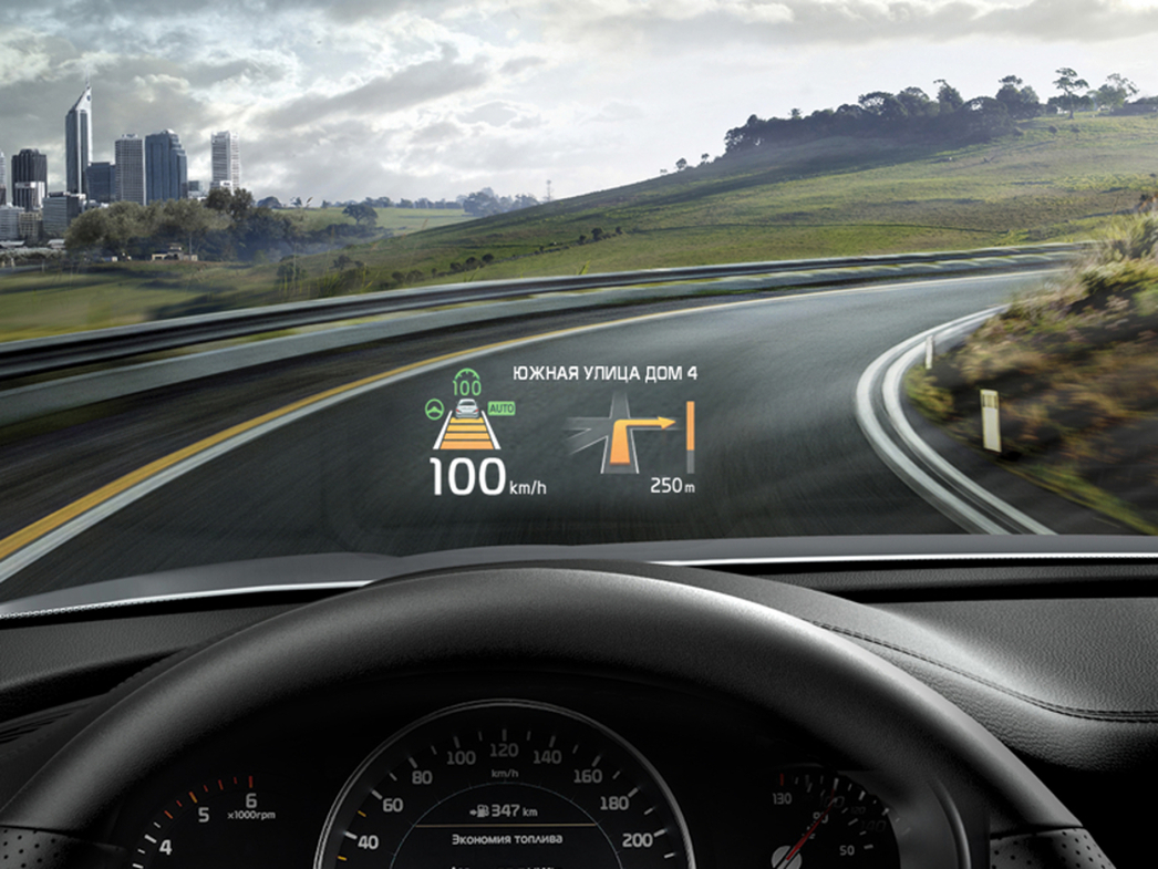 С помощью этого устройство на лобовое стекло выводится основная информация о текущих характеристиках езды (скорости, направлении движения, ближайших поворотах и статусе круиз-контроля). До этого HUD внутри модельного ряда марки предлагался только для премиального седана Quoris и авто класса GT Stinger.