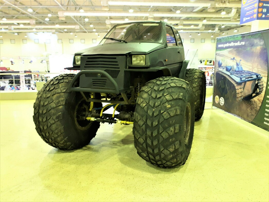 Мотобуксировщик (он же — «мотособака») «Аляска» — один из самых доступных «проходимцев» на выставке. Стоит машина всего 87 000 рублей. На ней можно передвигаться практически по любому типу покрытия, будь то снег, грязь или лесной бурелом. При этом «Аляска», помещается в багажник внедорожника.