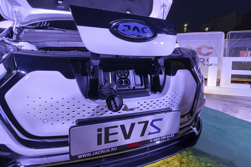 Электропремьеру на российском автонебосклоне провели ребята из JAC, которые «сорвалои покров» со своей новинки — то ли кроссовера, то ли хэтчбека — iEV7S. Облик машины местами схож с хорошо знакомым нам Lifan X50, а вот начинка — вся сплошь новая и современная. Главная же конструктивная особенность — гигантская батарейка, а принадлежит она корейцам из Samsung. Правда, сделана тоже в Китае.