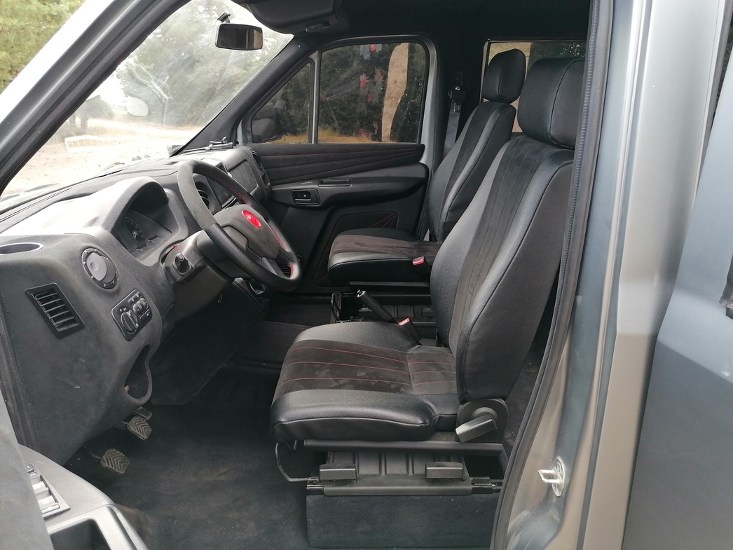 Пятиместный салон почти полностью повторяет интерьер «Газели Next», но, ради пущей солидности, авторы проекта обшили сиденья, переднюю панель и дверные карты алькантарой. Диван второго ряда составлен из трех раздельных кресел. За ними расположен просто безразмерный багажник, что неудивительно при общей длине машины 5090 мм.