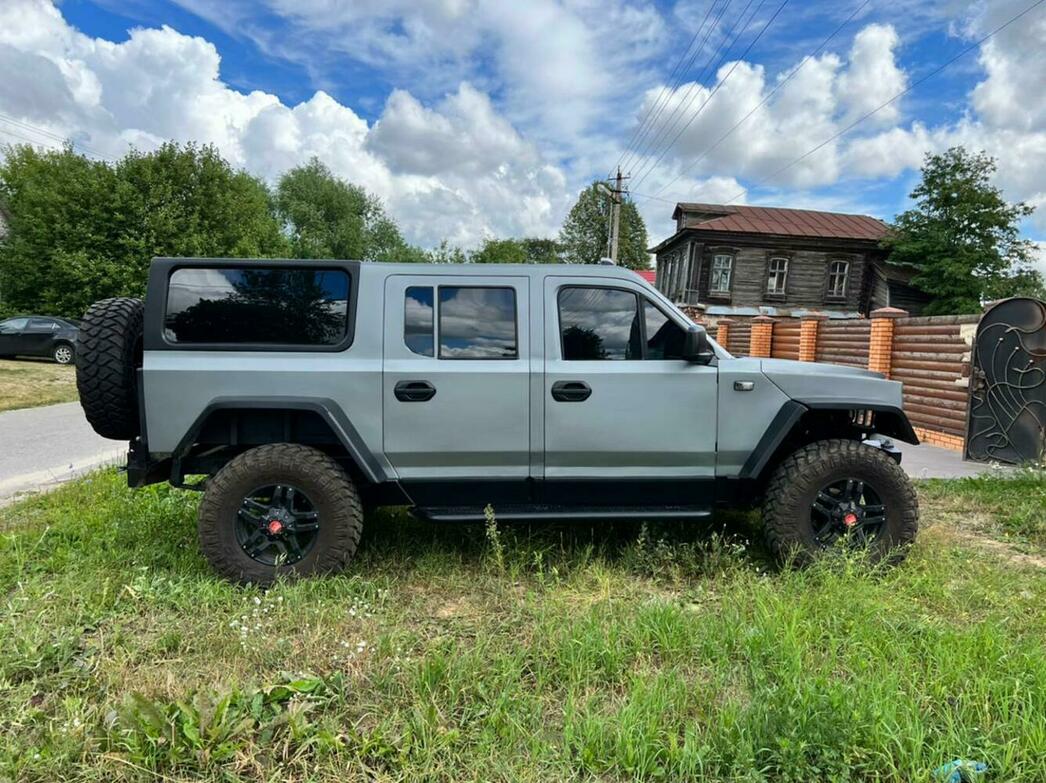 Пятидверный кузов построен вокруг универсального кабинного модуля «Группы ГАЗ», который также подрезан по высоте. Из-за этого пришлось перекраивать передние двери. Остальная часть — от средней стойки до заднего бампера — собственная разработка бауманцев. Как, собственно, и монструозное интегральное оперение, где капот, крылья и решетка — это единое целое.