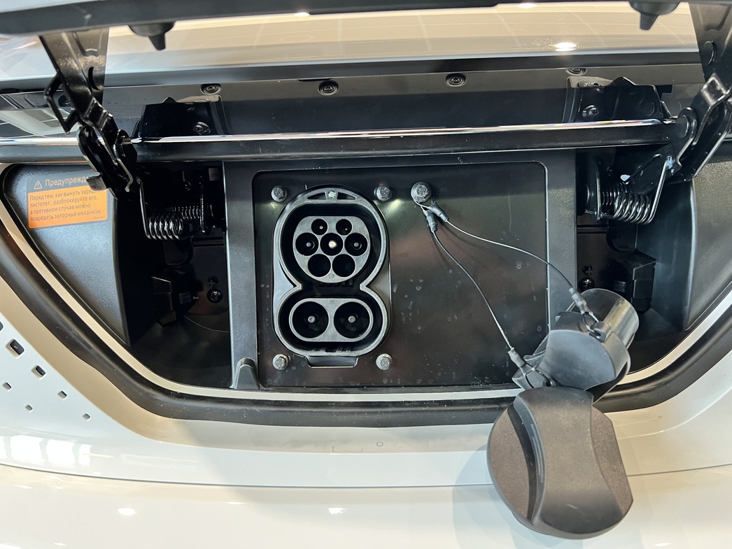 Раньше с электрокарами мы дел как будто не имели, а потому просим объяснить, как его вообще «кормить». Менеджер демонстрирует спрятанный под шильдиком на «морде» разъем европейского типа CCS2 и гордо заявляет, что мощные зарядки на 100 кВт «наполняют» 53-киловаттчасную батарею седана всего за полчаса. А следом — показывает и мобильное приложение с картой станций: «Вам придется скачать таких несколько». Хотя можно заряжаться и от домашней розетки, но нужно купить специальный адаптер.
