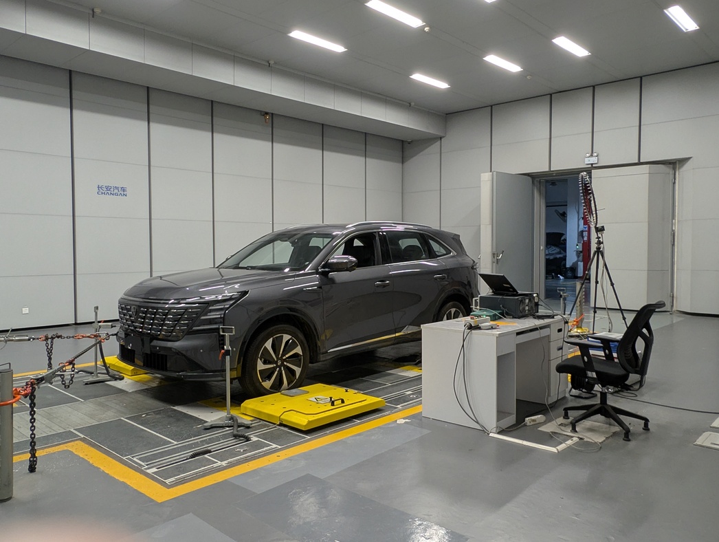 Первое, куда нас ведут — комплекс лабораторий NVH. Эта аббревиатура расшифровывается как Noise, Vibration, Harshness — то есть шум, вибрация, жесткость. Звучит сухо, но за этими тремя словами или буквами, как угодно, скрывается то, что отличает комфортный автомобиль от раздражающего. Всего там 22 лаборатории: восемь для собранных автомобилей и четырнадцать для отдельных систем и компонентов. Общий объем инвестиций в эту историю — около 80 миллионов юаней.