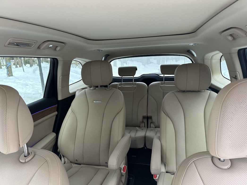 «Парящая» консоль между передними седоками позволяет положить множество полезных предметов, и они не будут кататься и разлетаться по салону. А третий ряд сидений складывается в идеально ровный пол и тогда багажник становится поистине огромным. Ну а чтобы облегчить доступ на третий ряд, во втором ряду расположены капитанские кресла с проходом между ними, именно поэтому AITO M7 — кроссовер 6-местный.