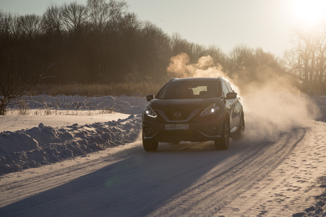 Попробуем усложнить задачу, и прогоним «Мурано» с дороги. Обрушившиеся с небес полметра снега — лучшее испытание. Так вот: сугроб для «японца» — дело плевое! Если, конечно, между «космическим» сиденьем и мультифункциональным рулем годная прокладка.