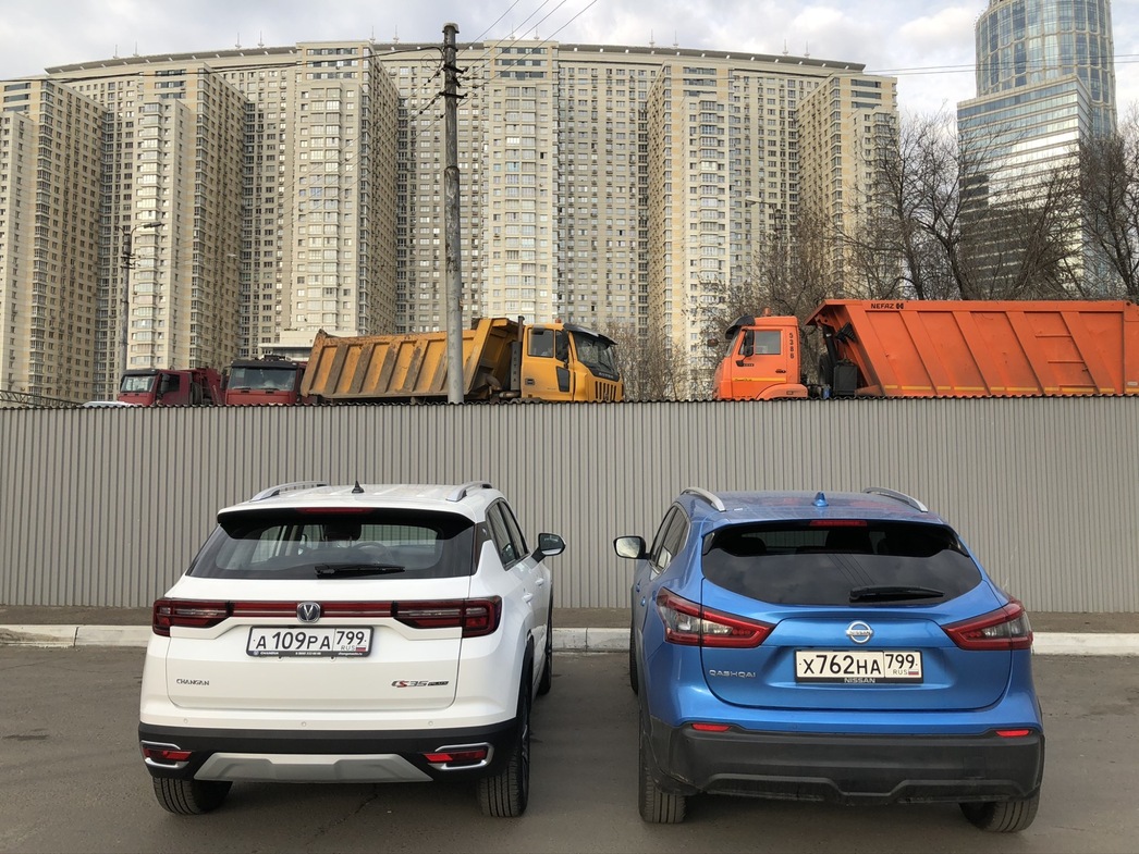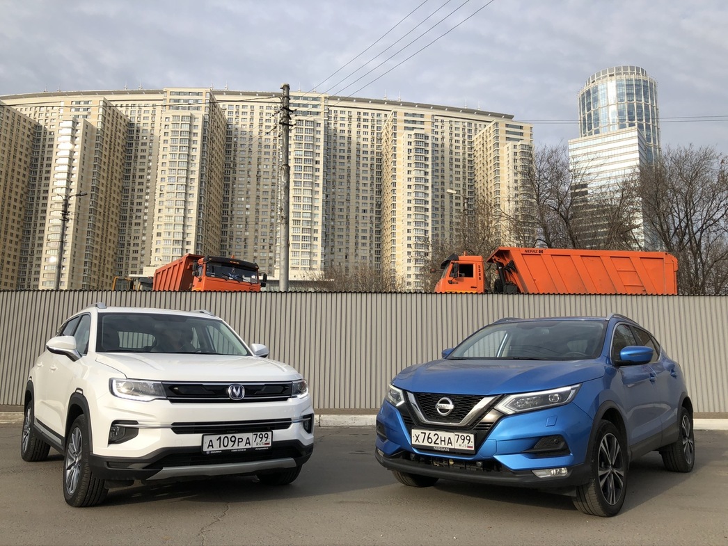 Итак перед нами Changan CS35 Рlus (передний привод, безальтернативный 1,6-литровый атмосферник мощностью 117 л. с., АКП) и Nissan Qashqai (передний привод, 1,2-литровый турбодвигатель о 115 «лошадках», вариатор). В комплектации с 7-дюймовым тачскрином на «приборке» Qashqai стоит около 1,2 млн. рублей — как и CS35 Рlus с 6-ступенчатым «автоматом». Конкуренты? А почему бы и нет…