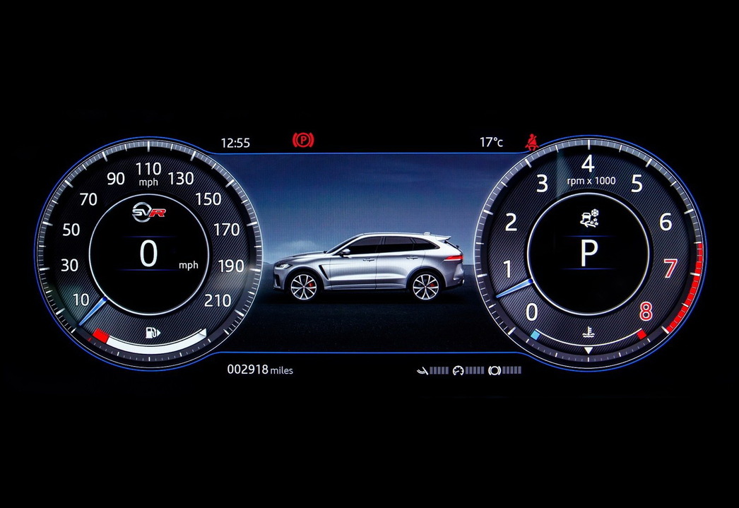 Если резко надавить на педаль акселератора, Jaguar F-Pace SVR начинает настолько эффективный разгон, что кажется, будто передняя часть машины сейчас встанет на дыбы, словно заправский спортбайк. Даже моргнуть не успеваешь, как цифры на приборном щитке молниеносно разменивают первые 100 км/ч — за вездесущими камерами видеофиксации необходимо следить особенно тщательно.