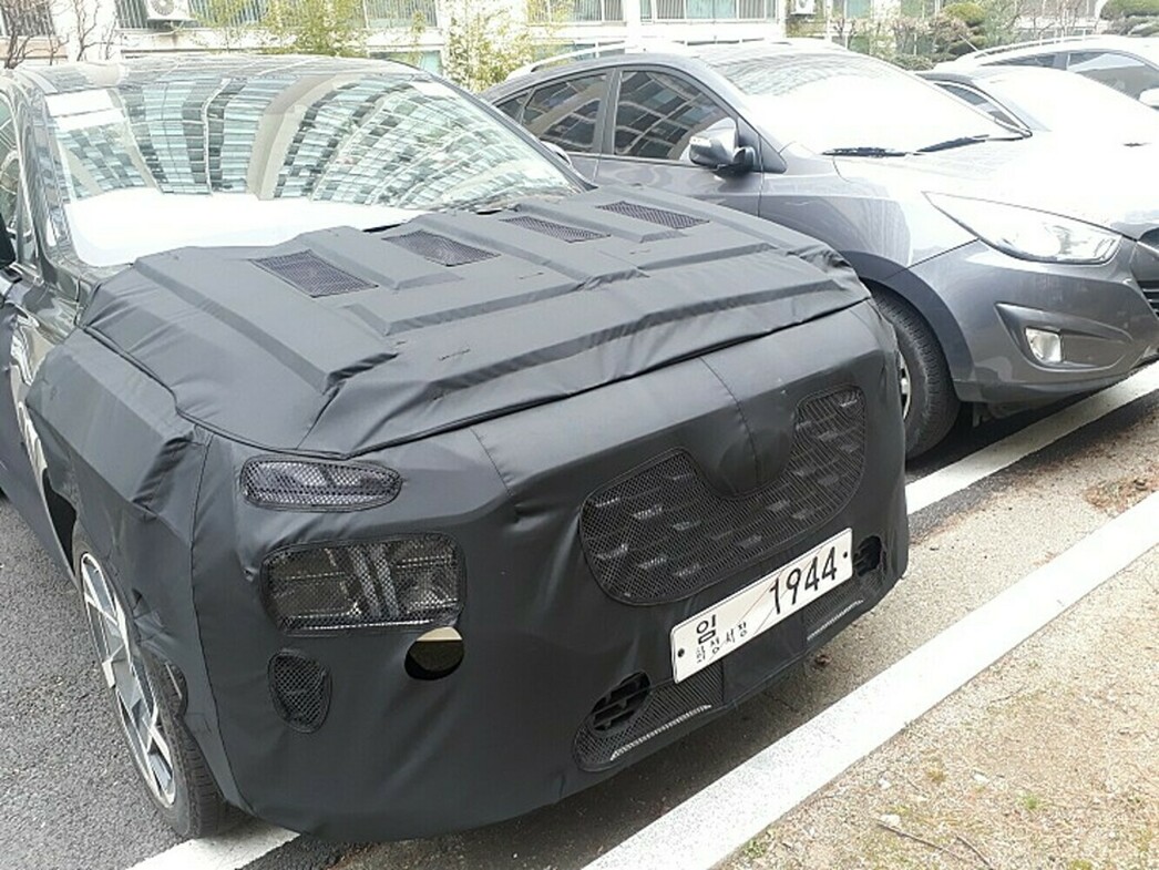 Снимки, опубликованные на корейском форуме Naver, говорят о том, что Hyundai Santa Fe сильно изменится внешне. Как минимум, авто обзаведется новой двухэтажной головной оптикой, другими фонарями и перелицованной решеткой радиатора, а также колесными дисками в свежем исполнении.