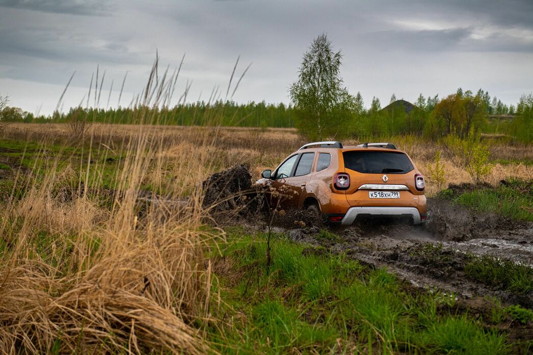 В грязи Duster чувствует себя уверенно. Машина с наглостью танка ползет по размытой дороге, вздымая клочья грязи. Да, кое-где жирный чернозем берется с нескольких попыток. Кроссовер буксует, напрягается, но перегреть вариатор не получается.