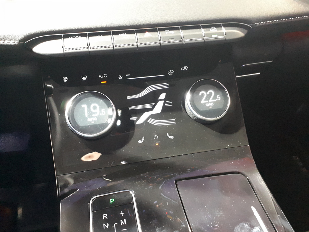 На передней панели — два экрана диагональю 12,3 дюйма каждый. На одном — графическая «приборка», а на втором отображается функционал медиасистемы. Ниже размещен сенсорный блок климат-контроля с двумя вращающимися рукоятями. Он похож на тот, что есть у британских марок — Jaguar и Land Rover. Еще ниже — крохотный селектор трансмиссии. Видно, что управление коробкой идет по проводам.
