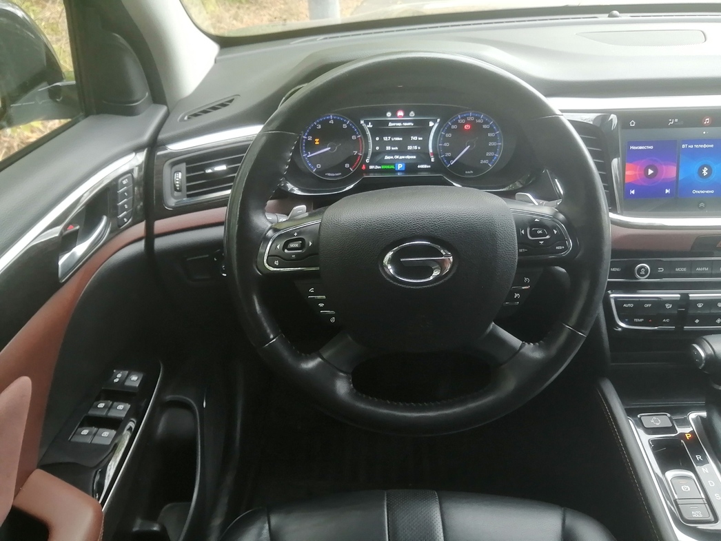 Некоторым машинам с таким как у GS8 соотношением производительности двигателя к снаряженной массе, просится более мощное «сердце». Но тут подобного ощущения нет. Да и «жрет» кроссовер, по-божески. В том числе, благодаря не сверхмогучему движку. Разумеется, не 6,5 л на «сотню» по трассе, как заявлено в ТТХ. Но в «десятку» литров при спокойной беспробочной езде по городу или в восемь-девять при движении по шоссе — уложиться вполне реально. Удивило, кстати, что если не смотреть на монитор борткомпьютера, то по поведению подвески GS8 даже не помыслишь о десятках тысяч зубодробительных километров пробега на счету у кроссовера. Все с ней нормально.