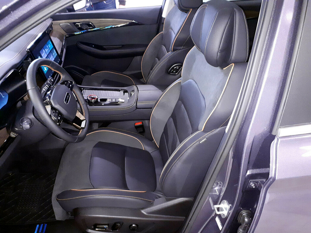 Что касается салона, то здесь также без претензий. Водителя встречает удобное кресло с электроприводом. В центре передней панели установлен огромный 12,8-дюймовый монитор, также есть графическая приборная панель, стильная подсветка салона, мультируль и так называемый режим отдыха. Это когда нажатием кнопки переднее кресло складывается, превращаясь в подобие кровати.