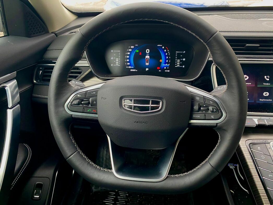 Далее. Рукоятка переключения передач «автомата»: у GS5 это классический рычаг, у Atlas Pro — изящный джойстик. Ну а кожаная отделка салона у обоих «кроссов» — вполне-вполне. Хотя у GAC, надо признать, пластика чуток побольше будет. А вот с точки зрения водительской эргономики, «олдскульный» GAC порадовал больше. Во-первых руль. У Atlas Pro, как по мне, чуть-чуть недостает диапазона регулировки по вылету. Ему бы еще несколько сантиметров хода «на себя»!