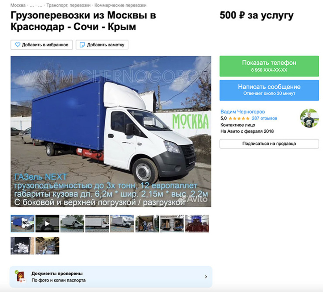Фотографии машины должны отражать ее функционал — от габаритов и типа фургона до наличия гидроборта. Именно по ним, без дополнительного описания, будет ясно, какие перевозки могут быть выполнены и подойдет ли заказчику имеющееся у вас транспортное средство. Используйте только реальные фотографии вашего авто, а не взятые из Интернета картинки — это повышает доверие заказчиков к вашему объявлению.