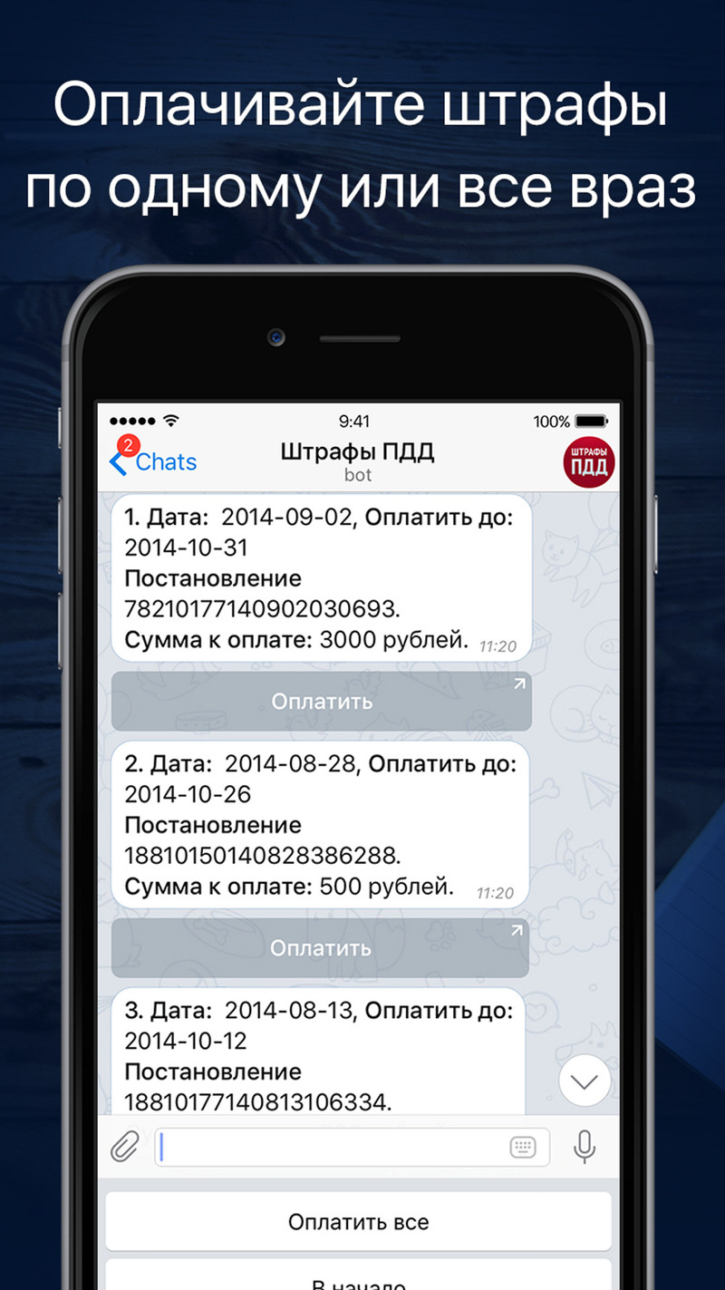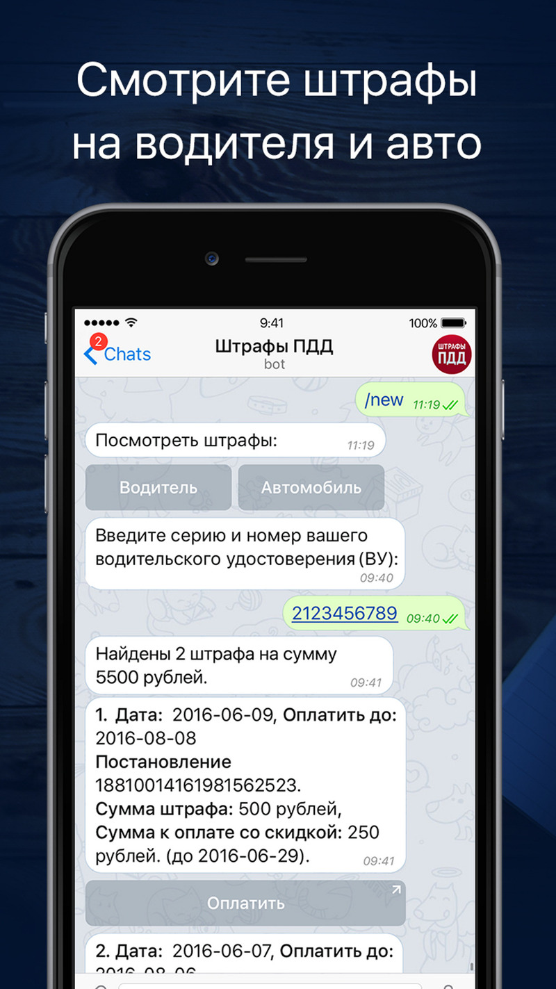 Бот присылает уведомления в виде текстовых сообщений, в которых можно найти все подробности о новом штрафе и подсказки, как его оплатить, не выходя из мессенджера. Очень, надо сказать, удобно.