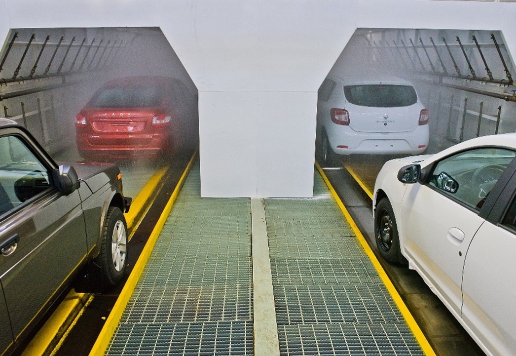 Следующий этап End Of Line — современный пост контроля качества, оснащенный яркими лампами, также добротной шумоизоляцией и климат-контролем. Сделано все это с «умыслом»: сотрудники смогут работать в действительно комфортных условиях, так что точно сделают свое дело хорошо. Кстати, камера позволяет менять температуру света, настраивая лампы, что дает уникальную возможность заметить дефект на автомобиле любого цвета. Далее идет дождевая камера, которая призвана проверить новые машины на герметичность. Подумали, кстати, и про экологию: вода в дождевой камере идет «по кругу», поэтому ее расход всегда «в рамках разумного» и строго контролируется.