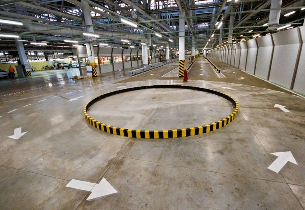 Суть проекта — это полностью принципиально новая система с точки зрения улучшения контроля качества готовых автомобилей. Круг самого трека, по которому перемещаются машины в процессе тестирования, теперь находится внутри сборочного цеха, что само по себе впечатляет, да и к тому же несет весьма существенные преимущества: новые машины не страдают от камней и осадков, попадая к покупателям действительно новыми, без малейших царапин и сколов, а погодные условия более не влияют на качество проводимого испытания.