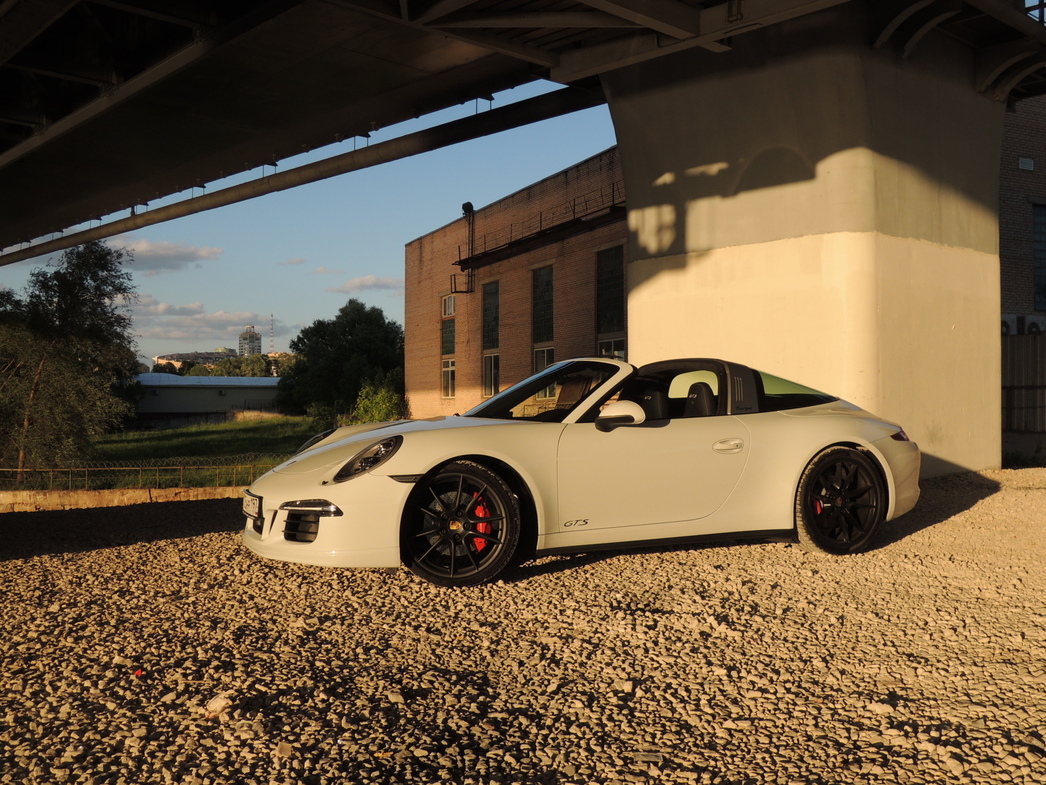 Сосредоточившись с прошлого года на атмосферной линейке GTS, компания Porsche активно внедряет атмосферные двигатели на все свои автомобили. И глупо было бы предполагать, что самая известная модель фирмы будет «обделена» 430-сильным атмосферным двигателем. Конечно, есть и более мощные версии вроде Turbo или даже Turbo S, в которых табун переваливает далеко за пять сотен, и они даже чуточку быстрее. Но из старых добрых «атмосферников» именно модель GTS считается самой правильной на сегодняшний день. К тому же, шарма нашему тестовому герою добавляет еще и тот факт, что он обладает довольно редким типом кузова — Targa. Такие были очень популярны в 70-80 годы прошлого тысячелетия на моделях 911 и на некоторых «американцах» вроде Chevrolet Corvette или Camaro. То есть получается, что ты едешь вроде и в кабриолете, а вроде и в купе. При этом, верх откидывается весьма оригинальным способом — сначала назад отьезжает огромный стеклянный колпак, прикрывающий двигатель и крошечные места для задних миниатюрных пассажиров, потом половинка крыши складывается по типу обыкновенного родстера, после чего колпак возвращается в исходное состояние. В отличие от обычного кабриолета или родстера, на Targa невозможно закрыть или открыть крышу на ходу, подобные действия могут исполняться лишь тогда, когда селектор робота PDK находится в положении «Р».