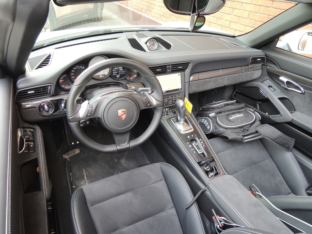 Внутри же Porsche 911 Targa 4 GTS так и вовсе практически ничем не отличается от своих собратьев: все очень качественно, лаконично и стильно. В то же время, опустив чресла в ковшеобразные спортивные сиденья, поклонник Porsche оказывается как бы в своем родном пространстве. Ключ слева, все клавиши и кнопки управления всеми системами, словно стилизованные под некогда популярную модель сотового телефона Vertu, справа. По центру приборной панели расположились стильные аналоговые часы с довольно интересной системой хода стрелок. Робот PDK с двумя сцеплениями (с ним авто разгоняется до «сотни» на 0,4 секунды быстрее, чем даже на «механике»), полный привод... Одним словом, пора заводить эту бестию и как можно быстрее слиться с ней в экстазе.