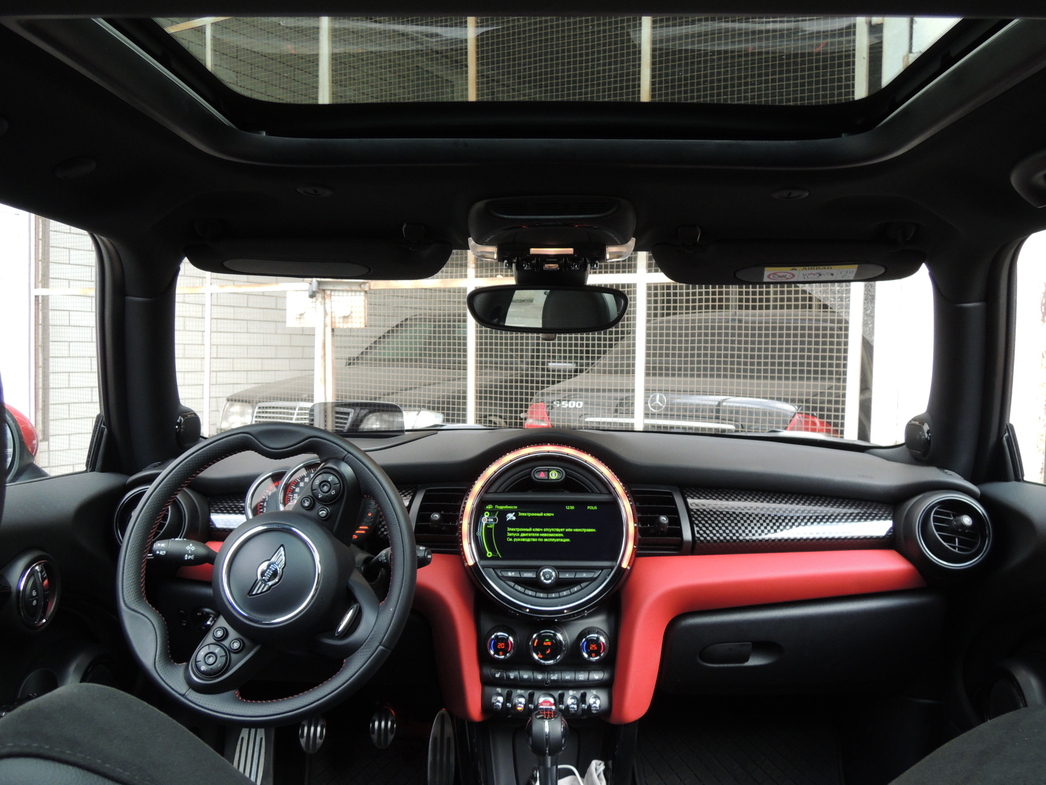 Замечательно, что подсветка меняет свой цвет в зависимости от выбранного режима езды. В самом экологичном варианте она зеленая, в стандартном – оранжевая, а «Спорте» – кроваво-красная. Не обошлось и без «прикольчиков» от MINI: при включении режима Sport на экране появляется изображение гоночного карта и ракеты, стремительно уносящейся ввысь. В максимальной комплектации автомобиль получает панорамный сдвижной люк, карбоновые вставки, проекционный дисплей, выводящий информацию на лобовое стекло, кожано-алькантаровые сиденья и стереосистему Harman/Kardon.