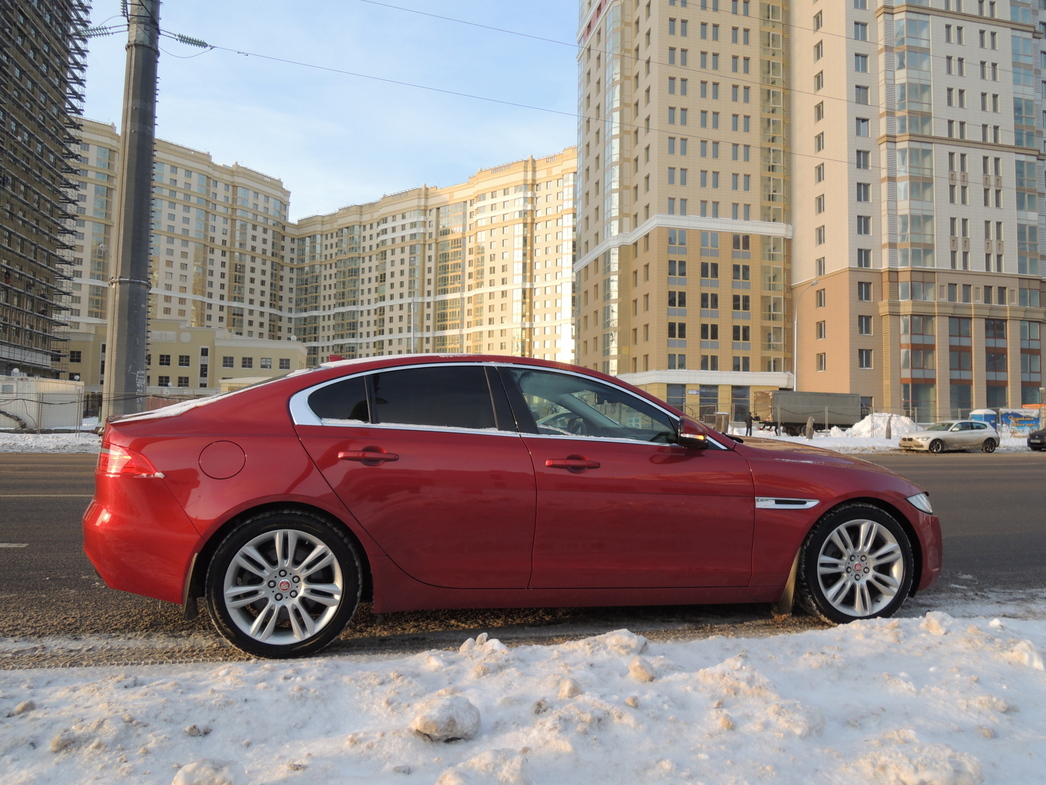 Нам достался заднеприводный ХЕ с двухлитровым турбированным двигателем мощностью 240 л.с. и 8-ступенчатой автоматической трансмиссией, способный разогнать автомобиль до 100 км/ч за 6,8 секунд. Наиболее близким конкурентом такого Jaguar XE можно считать 245-сильный BMW 328i и вовсе неспроста я назвал именно этого соперника. Все дело в том, что своими повадками на дороге автомобили Jaguar вообще напоминают «баварцев», разница может быть разве что в остроте отзыва на руль — все-таки у немцев эта реакция чуть острее. И все же, «дикие кошки» из Великобритании обладают ярко выраженным спортивным характером. При желании можно заказать себе ХЕ с интеллектуальным полным приводом, передающим до 90% крутящего момента на ту или иную ось или более мощным двигателем и тогда можно будет прочувствовать его характер в полной мере. Однако даже заднеприводный ХЕ проявил себя во всей красе и более чем достойно, тем более, что на его нелегкую британскую долю выпало тяжкое испытание в виде сильнейшего российского снегопада. И нельзя не признать, что несмотря на наличие не шипованной резины и полуметрового слоя снега в столичных дворах и переулках, Jaguar ни разу нигде не застрял! Да, порой «коту» приходилось тяжело, и приборная панель начинала неистово мигать всеми возможными индикаторами электронных помощников, но британец все равно достойно справлялся с как всегда неожиданной для коммунальщиков январской непогодой.