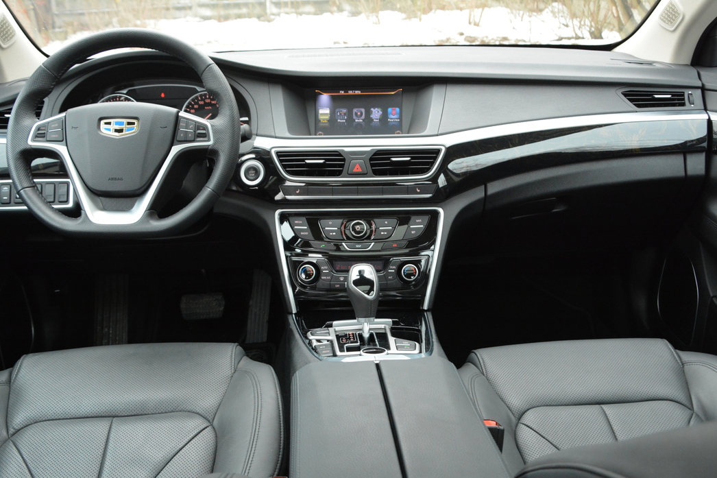 Вы наверняка хотите спросить про запах, свойственный многим автомобилям из Поднебесной? Так вот: никакого фенольного «аромата», хоть ты обнюхайся, в салоне Emgrand нет — ведь могут, когда хотят! Зато есть огромная «панорама» с люком, салонное зеркало заднего вида с автозатемнением, электронный стояночный тормоз с функцией автоматического «прикусывания» колодок, климат-контроль и даже система автономной парковки, не говоря уже о всяких там помощниках при старте на склоне и шести подушках безопасности, включая боковые шторки.