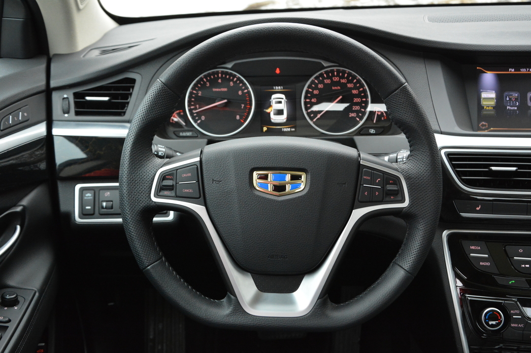 Руль, конечно, пустоват, но недостатком обратной связи не страдает. По крайней мере, на Emgrand GT не страшно ввинчиваться в повороты, и его не болтает, как известную субстанцию в проруби при экстренном торможении.