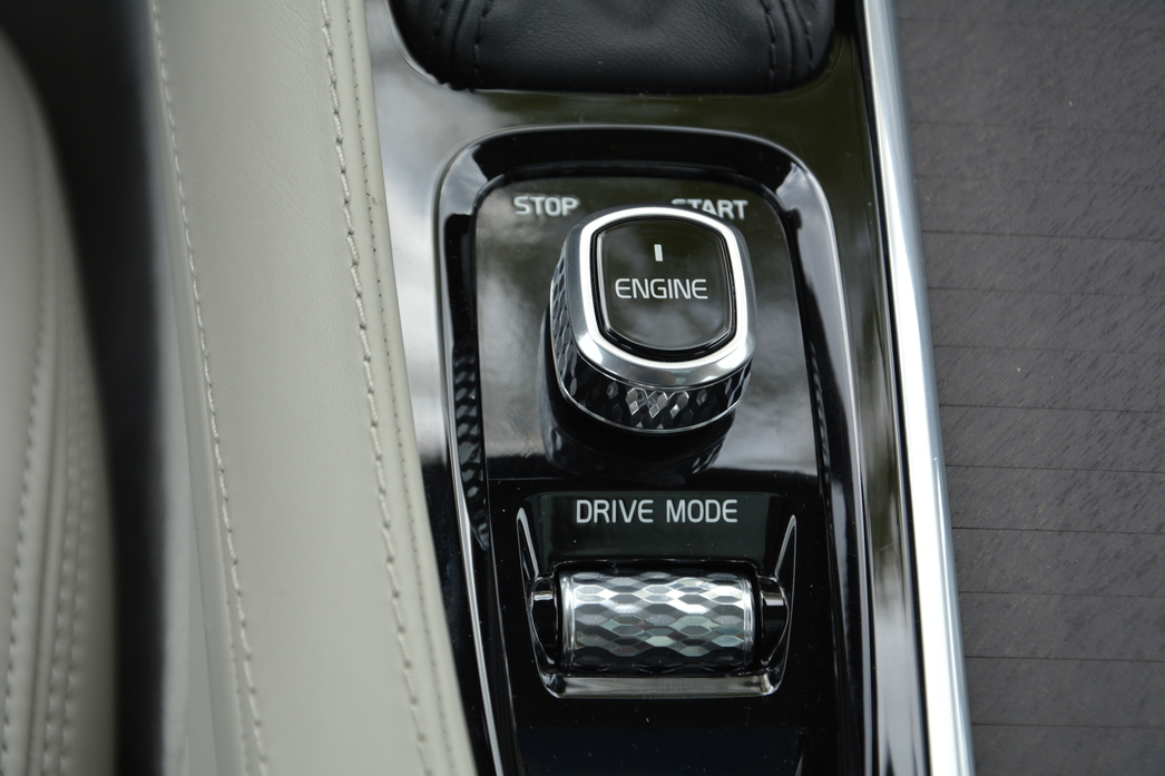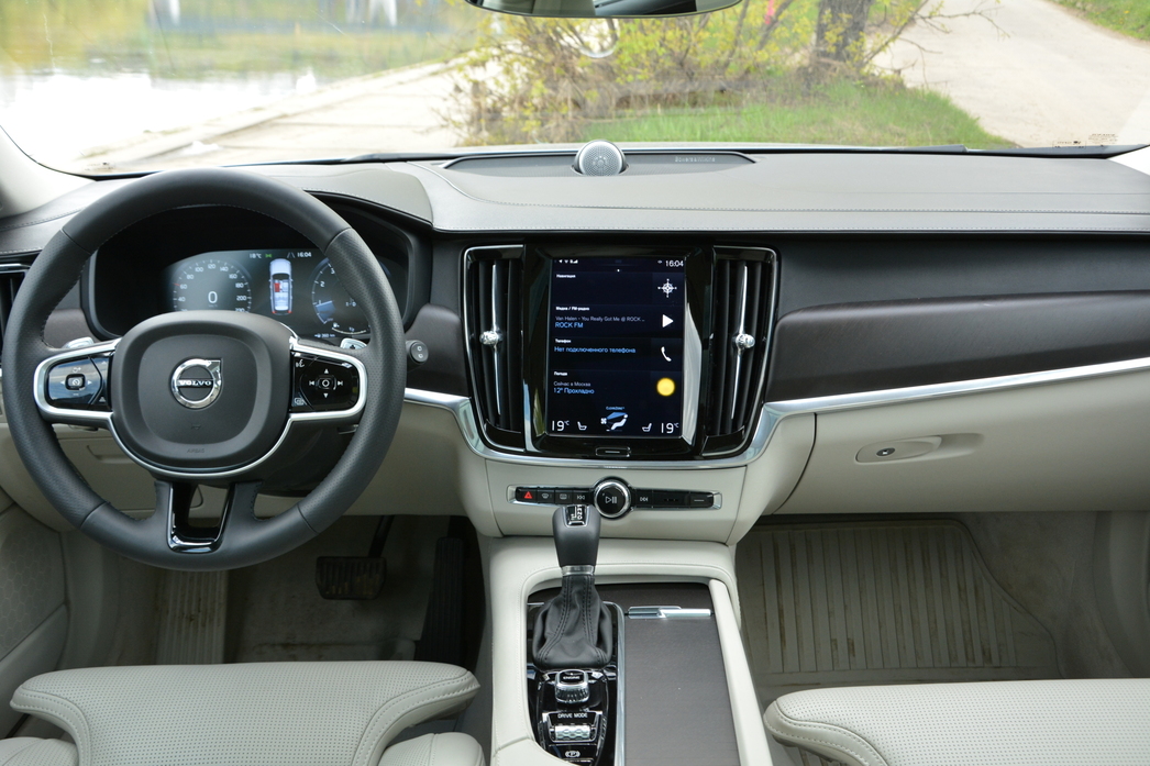 Но не будем о грустном и переберемся в салон нашего «премиального сарая». В интерьере, как и в любой современной Volvo, присутствуют два экрана: монитор электронной приборной доски и 9-дюймовый «планшетник», заменивший собой все, что в прочих машинах называется «центральная консоль». На этот «тач-скрин» выведены практически все функции управления системами машины — от ассистентов вождения до навигации, мультимедийных штучек (действительно впечатляющих) и климат-контроля. Кнопки-крутилки сохранились в самом минимальном количестве: на руле да на потолке — управляющие люком и шторкой огромной панорамной крыши. Ну и между передних сидений, рядом с селектором 8-ступенчатой АКП, пристроились поворотный тумблер запуска двигателя да «валик» выбора режимов движения.