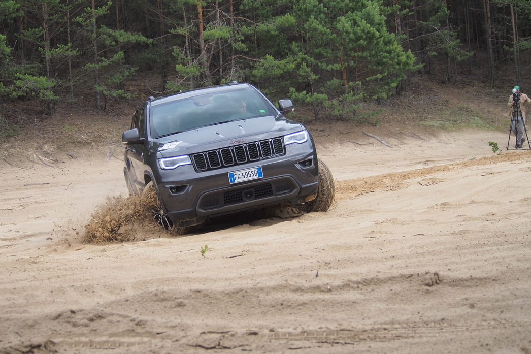 Сразу оговорюсь, что исследование неизведанных территорий вдали от асфальта — не моя стихия. Поэтому в упомянутый Renegade я, конечно, не полез, поскольку не сильно верил в его потенциал. Начал свой экскурс по трассе на Compass, затем пересел на Grand Cherokee и под конец опробовал Wrangler. Понятно, что для последнего все ухищрения строителей трека показались детской игрой в песочнице. Ему подавай что-то покруче. Compass, несмотря на ярко выраженную кроссоверность, в принципе не оплошал. Хваленую систему Active Drive Low, увеличивающую тягу на колесах до максимума, пришлось включить всего пару раз, а функцию удержания автомобиля на спуске — так и вовсе единожды. Однако основное время я посвятил издевательствам над «Грандом», поскольку он представлял собой золотую середину: с одной стороны, еще не продвинутый внедорожник, с другой — уже не паркетник.
