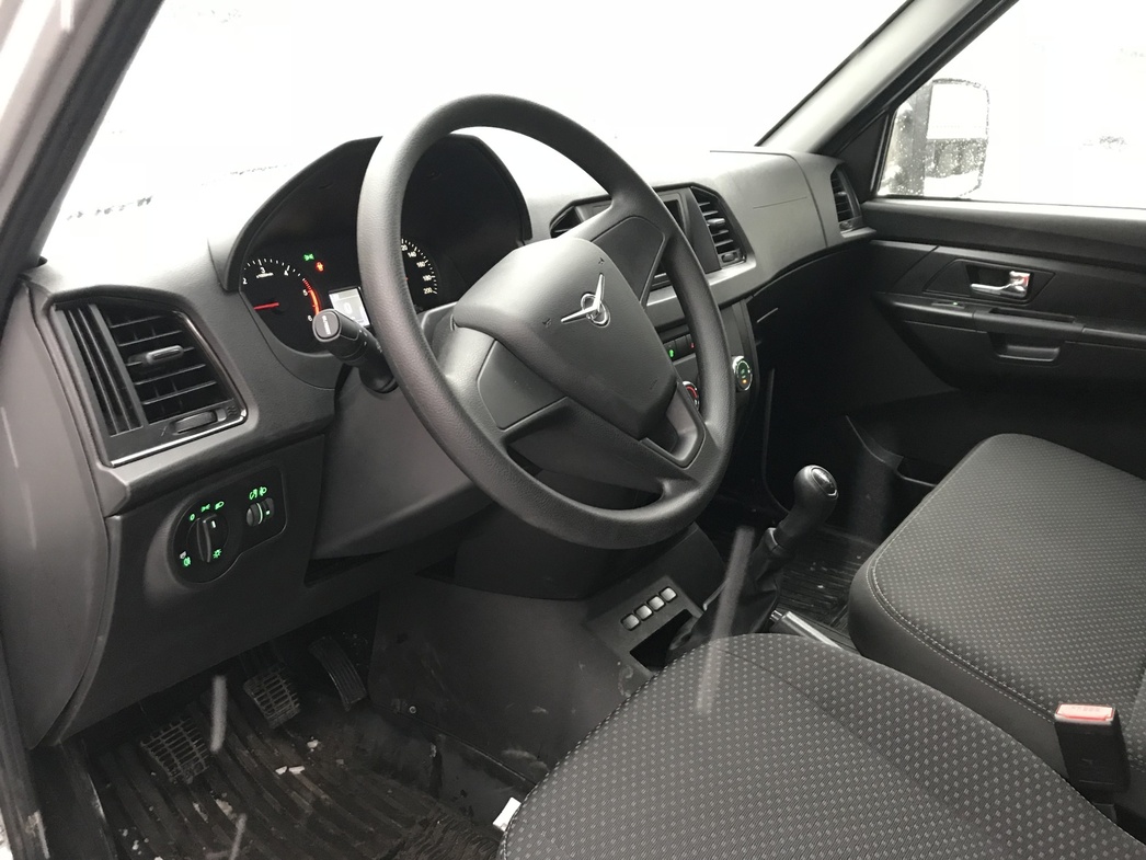 За эти деньги вы получаете заднеприводный грузовичок с тентованным кузовом, вооруженный бензиновым силовым агрегатом мощностью в 149 л. с. производства ЗМЗ. КП — пятиступенчатая, кабина, как у модели UAZ Patriot, только однорядная — формально рассчитанная на водителя и пару пассажиров. Наш Profi лишен «музыки» и прочего баловства — просто рабочая лошадка, не более того.