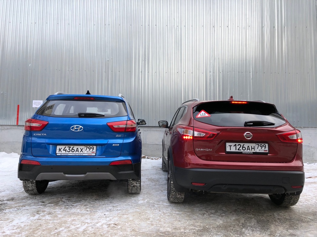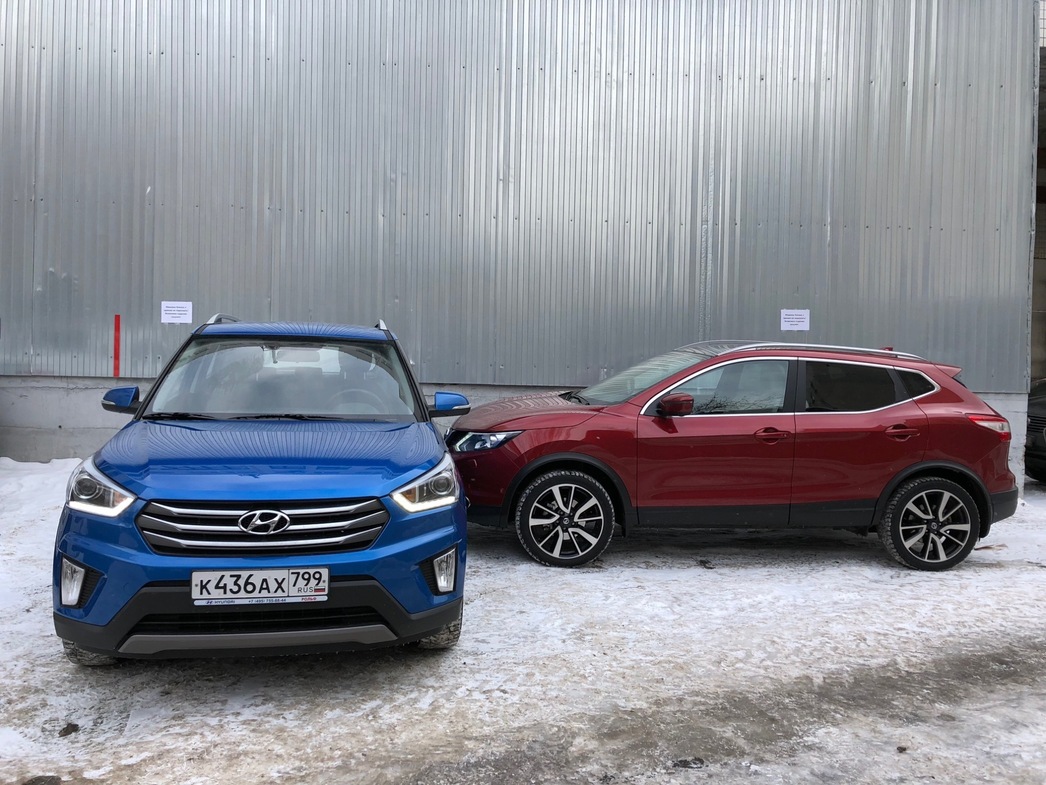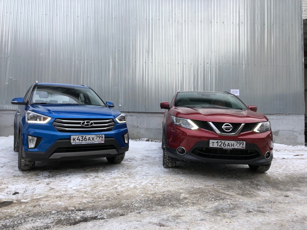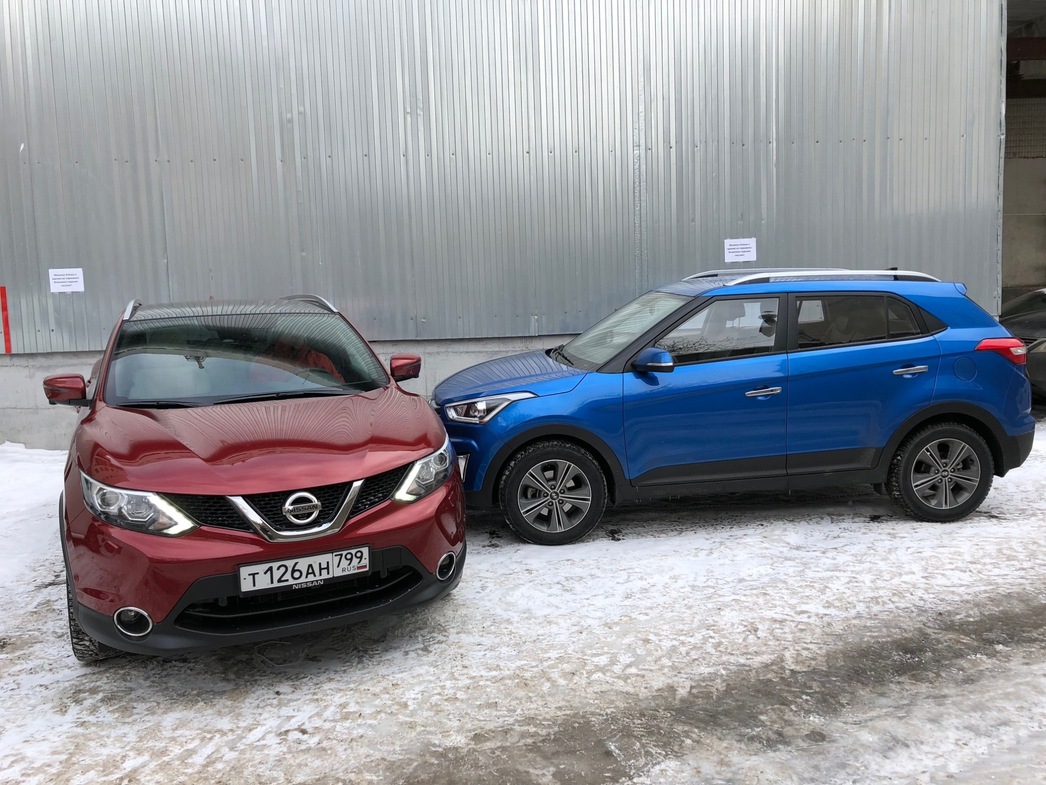 В этой связи мы решили «столкнуть лбами» двух столпов полноприводного сегмента российского авторынка — Nissan Qashqai и Hyundai Creta. На Qashqai выбор пал потому, что эта популярная модель стала своего рода первопроходцем. С нее, можно сказать, и начался в нашей стране бум на компактные городские полноприводные машины. Да и сейчас покупатель ее любит. А Hyundai Creta примечателен тем, что совсем недавно появившись на рынке, уже в первые полгода продаж буквально «порвал» конкурентов, пользуясь чуть ли не ажиотажным спросом у покупателя.