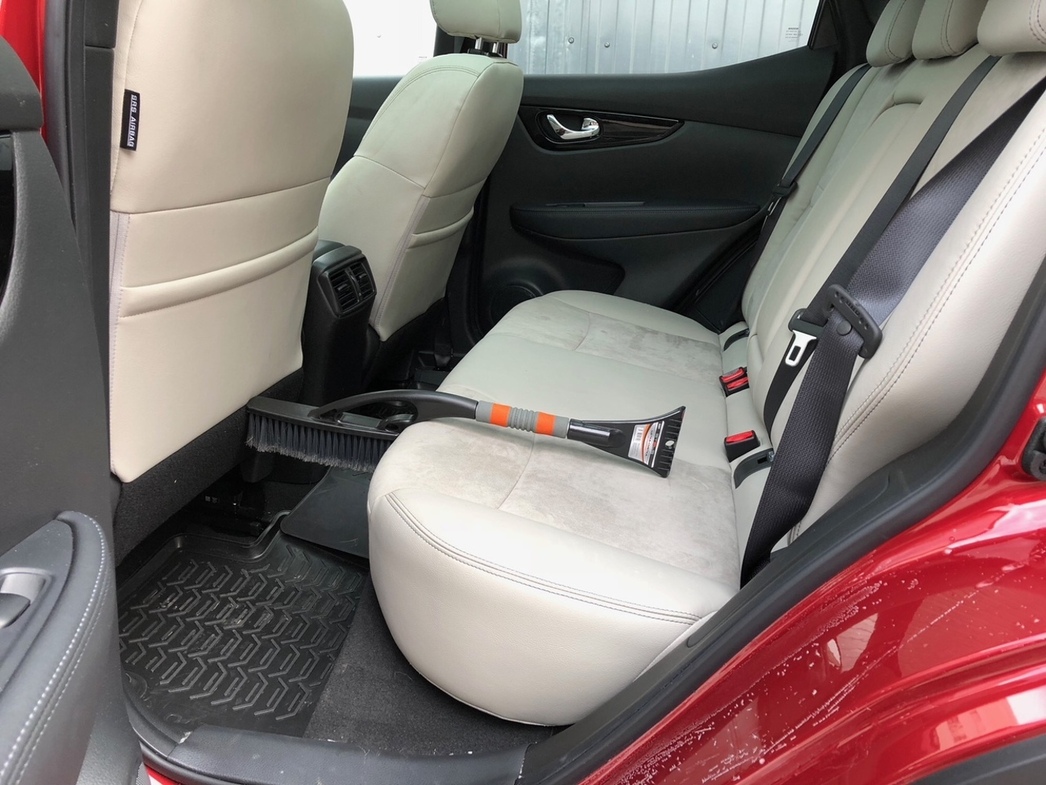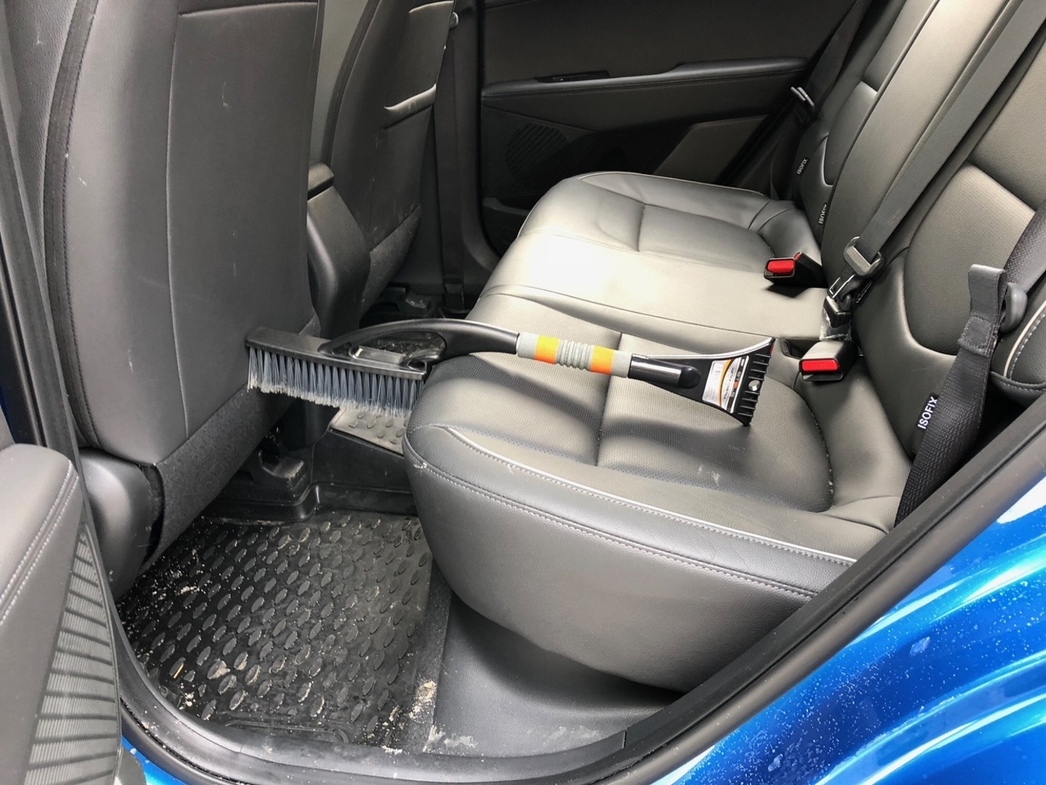 Автор этих строк отрегулировал положение водительских кресел в обеих машинах «под себя» и посмотрел, сколько при этом осталось места для ног сидящего прямо за его спиной пассажира. Мы не стали сажать сзади человека-испытателя, а доверили наглядную демонстрацию полученного результата бездушному, а потому абсолютно беспристрастному «судье» — обычной щетке-сметке для снега.