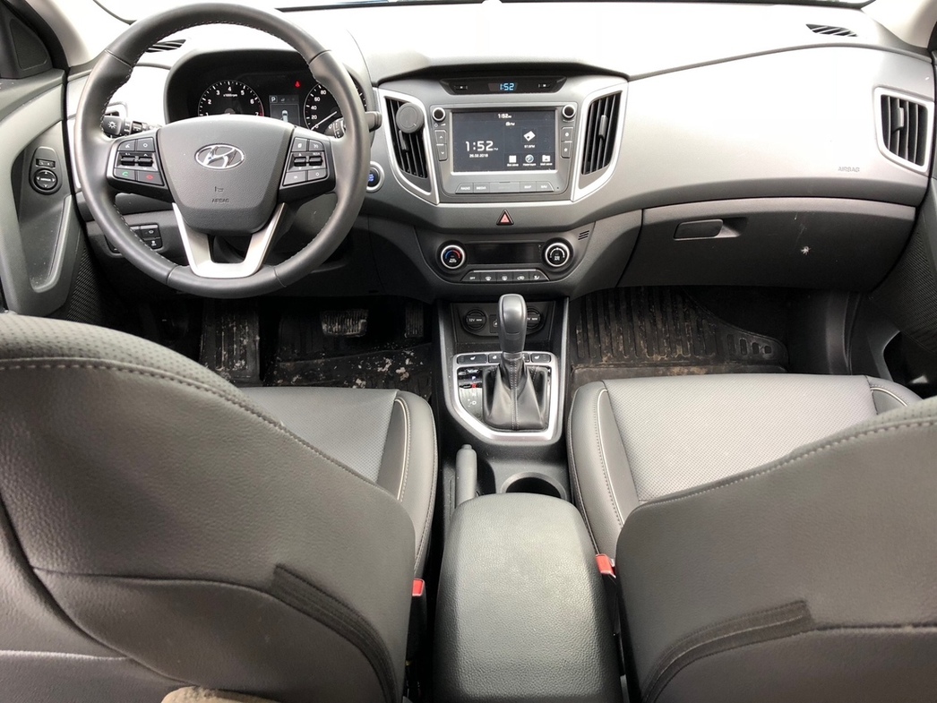 Такой Creta положен внушительный пакет опций. Например, «климат-контроль», регулировка рулевой колонки по высоте и вылету, подогрев руля, управление магнитолой на руле, разъемы USB и AUX, bluetooth, органайзер под полом багажника, электростеклоподъемники на всех дверях, парктроник задний, датчики давления в шинах, 3,5-дюймовая ЖК-панель приборов, боковые шторки и подушки безопасности, система стабилизации с ассистентом спуска с горы, светодиодные ДХО, рейлинги на крыше, 16-дюймовые легкосплавные диски и т. п.