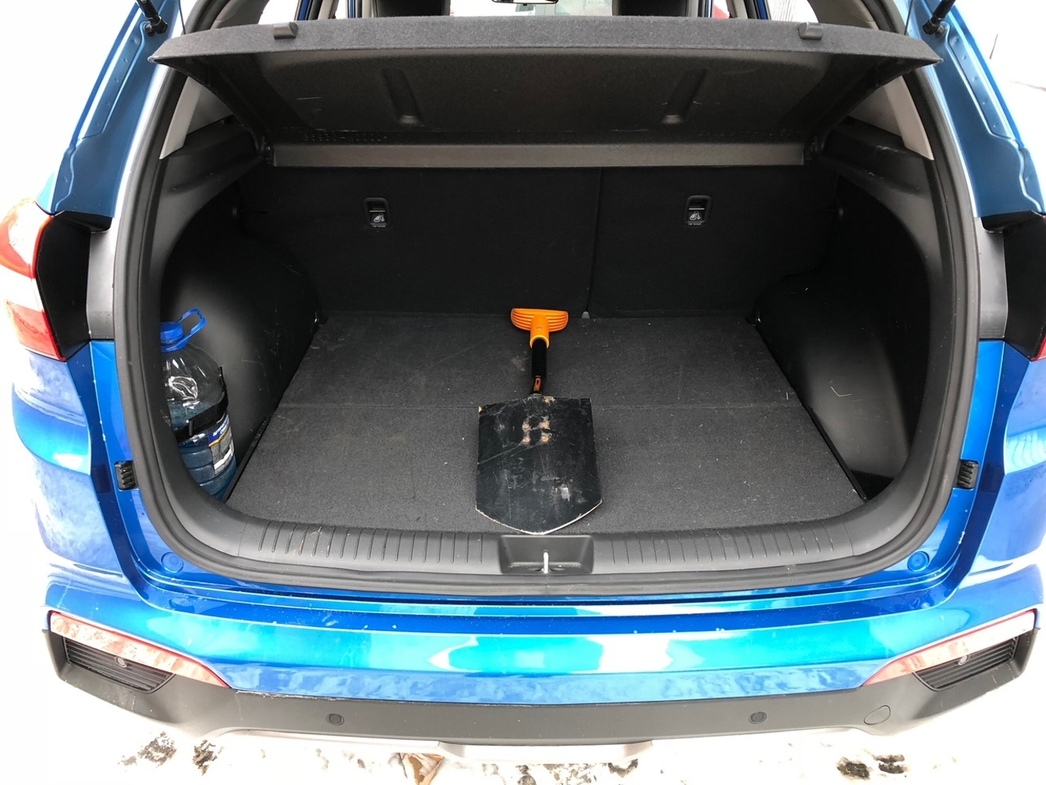 На фотографиях отлично видно, что в обеих машинах ноги заднего пассажира за одним и тем же водителем окажутся в абсолютно одинаковых условиях, не смотря на меньшую колесную базу Creta. Впечатлившись неожиданными результатами этого опыта, мы решили провести аналогичный тест и с багажниками обоих авто — Qashqai ведь длиннее Creta! Результат вы также можете наблюдать на фотографиях: машины разные, а одна и та же лопата располагается в них абсолютно идентичным образом. Спрашивается: и куда же японцы дели дополнительные миллиметры Qashqai?!