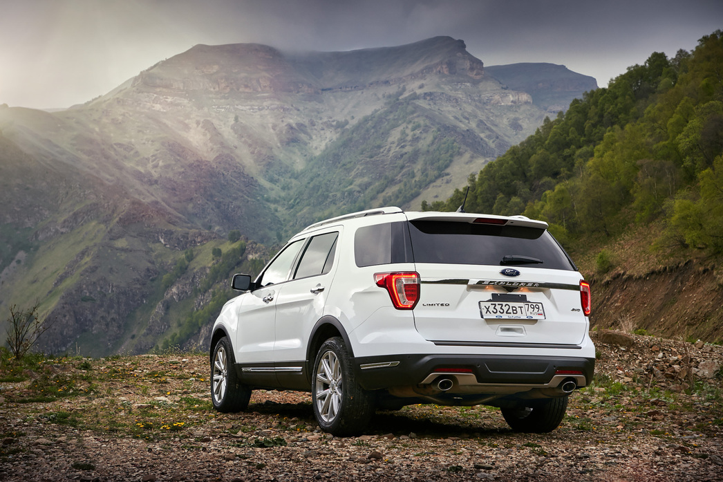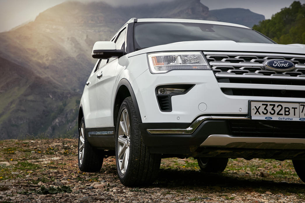 Не стоит сомневаться, что кроссовер заряжен полным комплектом электронных систем активной и пассивной безопасности, не говоря уже об интеллектуальном внедорожном потенциале. Система полного привода Terrain Management автоматически перераспределяет крутящий момент в зависимости от условий движения. А кроме того есть возможность вручную выбрать с помощью шайбы один из трех внедорожных режимов — «Снег», «Грязь» и «Песок». Впрочем, форсируя грунт и целину при клиренсе в 211 мм, следует учитывать длинные свесы, так что идеальной геометрическую проходимость Explorer не назовешь.