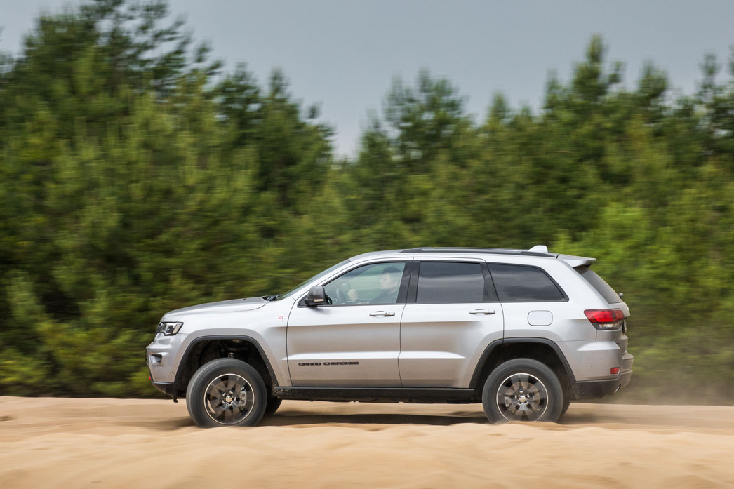 Гладенький польский автобан, по которому корреспонденту портала «АвтоВзгляд» пришлось добираться из варшавского аэропорта к месту внедорожных покатушек, вполне предсказуемо не доставил ни ему, ни Jeep Grand Cherokee Trailhawk никаких проблем. Это без преувеличения максимально комфортная езда на любых скоростях при всегда остающемся запасе тяги у 286-сильного V6 объемом 3,6 литра (максимальная мощность — 286 л. с., разгон до сотни — 8,3 секунды).