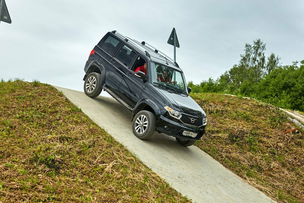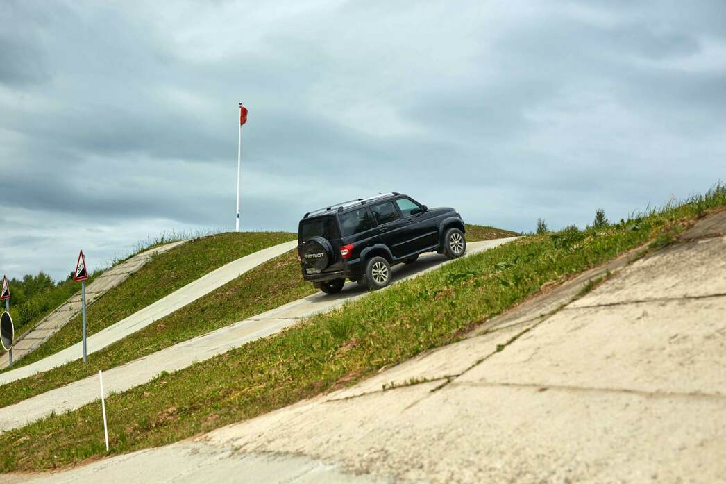 Поскольку за «баранкой» автомобиля системы УАЗ мне предстояло оказаться впервые, воспользовался возможностью попробовать «тачку» на вкус на специально подготовленной триальной трассе. Братцы, первое впечатление от авто — чертовски неудобный аппарат: близко друг к другу расположены педали; коробка передач на ощупь такова, будто в кастрюлю с манной кашей насыпали болтов, воткнули туда деревянную ложку и ты эту субстанцию размешиваешь; левой руке мешается дверная ручка… Но стоило подъехать к первому препятствию, как про нюансы эргономики тут же забыл. Не буду грузить эмоциями по поводу того, как взбирались на крутейшую горку, когда просто не видишь, куда едешь, да и пешком вряд ли вскарабкаешься на кручу. Важно тут, что УАЗ «Патриот» на понижаечке вжик — и взял вершину. Да, местами было очень страшно, но абсолютно невозмутимый инструктор ровным голосом подбадривал, дескать, не дрейфь, дружище, эта машина способна на большее.