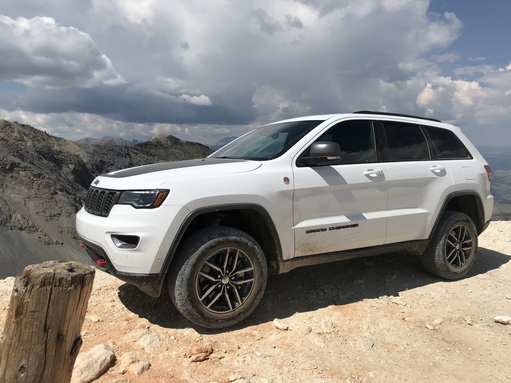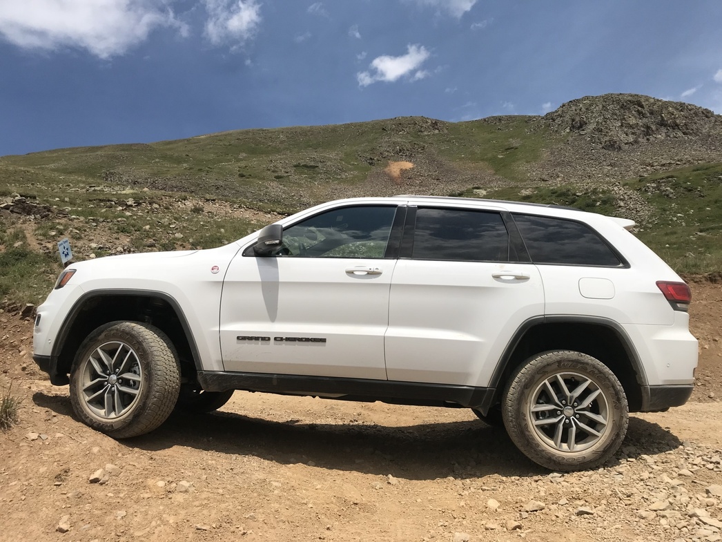 Но врубаешь 4WD Low, режим «Скалы», поднимаешься над землей на 274 мм — и он справляется с проблемами не хуже Rubicon. Нет, хуже, конечно, заставляя водителя поднапрячься, но вполне уверенно. Пусть и с водительским напряжением, но Jeep Grand Cherokee Trailhawk реально способен справиться практически с любым бездорожьем. Что, впрочем, подтвердило и жуткое ненастье, заставшее нас на спуске с одного из пиков Скалистых гор. Внезапный град с дождем и снегом в секунды превратил тропу (глина и камень) в каток, направление за пеленой ненастья едва угадывалось.