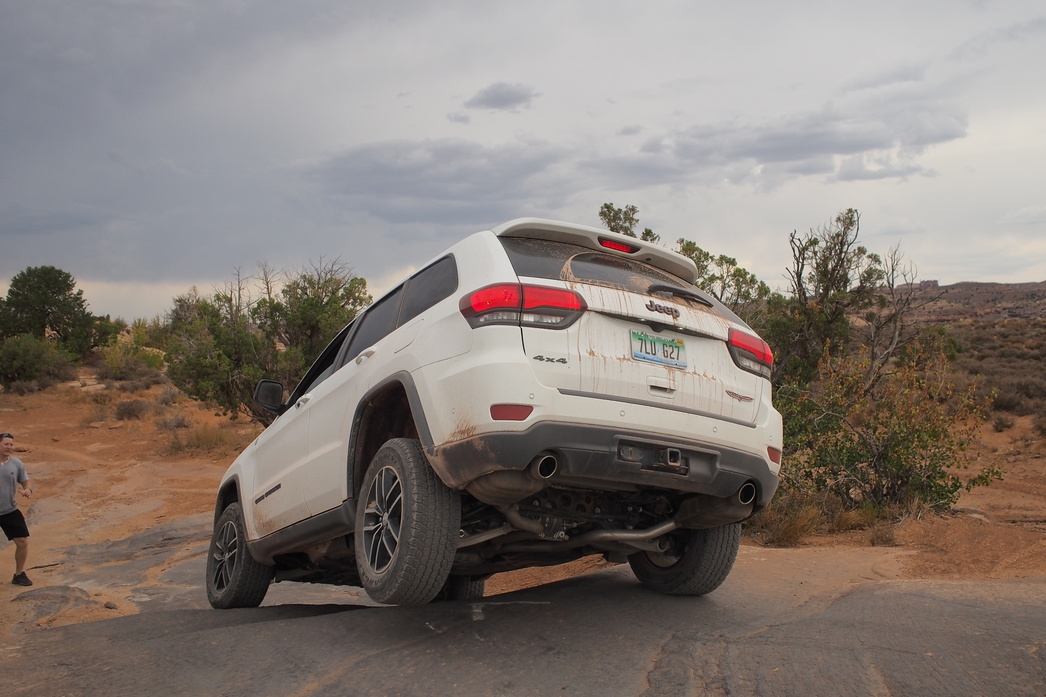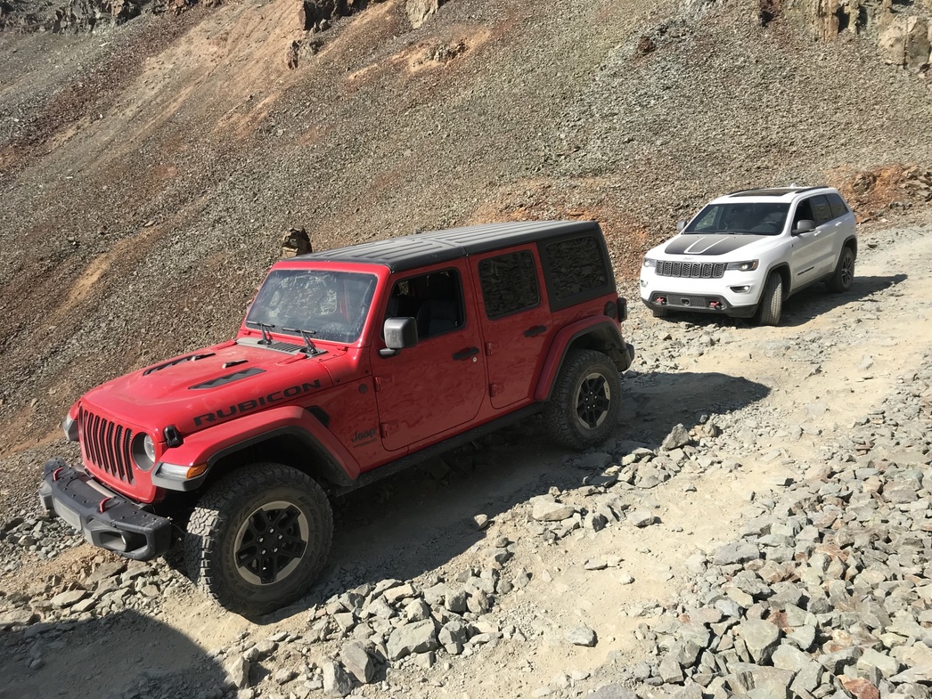 Без малого 50 км по горному бездорожью с 45-градусными подъемами и такими же спусками по «дороге» из камней самой разной величины, остроты и подлости. Езда по такой щебенке — то еще удовольствие. Нет, Geep Wrangler Rubicоn со своим клиренсом в 250 мм, старой доброй рамой и шасси с мостами и пружинной подвеской, да еще увеличенной до 62 мм колесной базой с подобными мелочами справлялся, их не замечая. А вот Jeep Grand Cherokee Trailhawk…