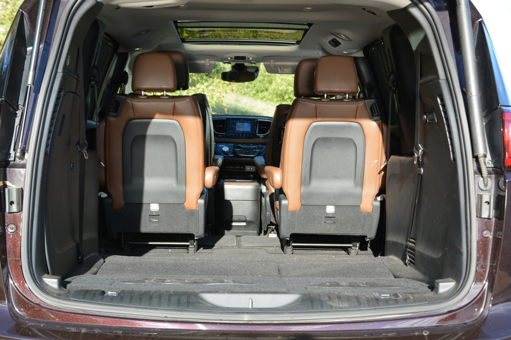 Точно такой же фокус, кстати, — то есть полная уборка в специальную нишу в полу, — возможен и с обоими креслами и второго ряда. В таком варианте грузовые возможности Pacifica становятся уж совсем неприличными — почти 4 кубометра свободного места!