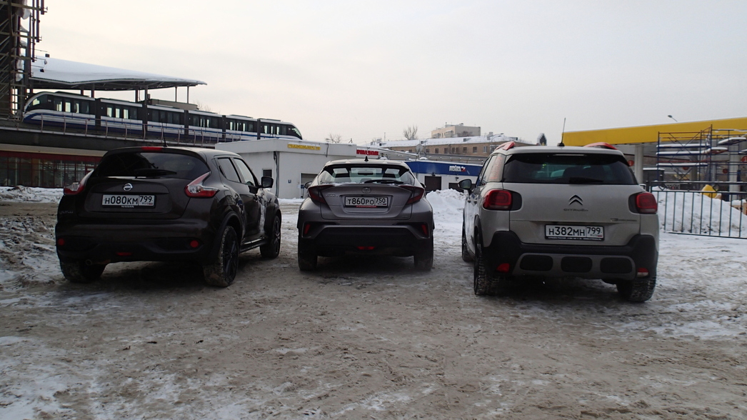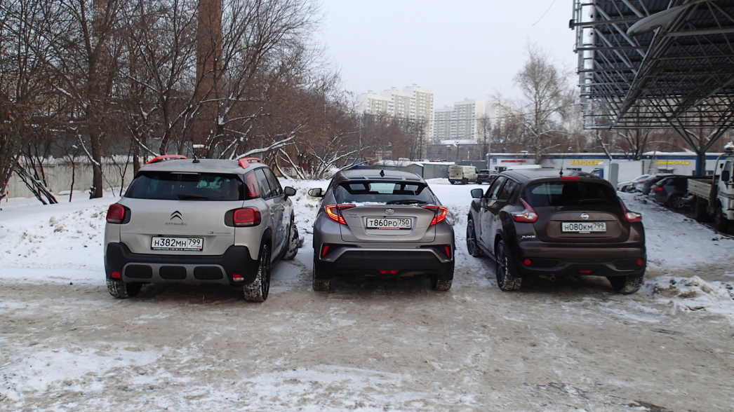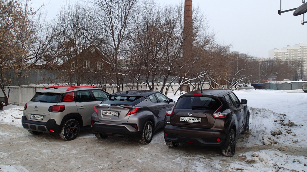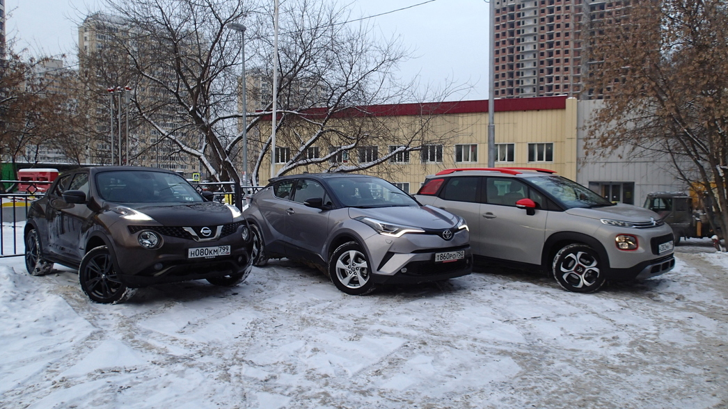 На тесте были топовые версии моделей, и, как видно, с учетом наличия системы полного привода, самым дорогим в нашей тройке оказался Toyota C-HR. Несмотря на высокую цену и минимальный размер багажника, именно этот вариант выглядит предпочтительнее остальных. Среди его основных преимуществ — стильный, удобный, вместительный салон и великолепные ездовые характеристики. Да и дизайн у него все-таки наиболее выиграшный и современный: если C3 Aircross и Juke слишком экстравагантны и рассчитаны явно на любителя, то C-HR более демократичен во всех отношениях.