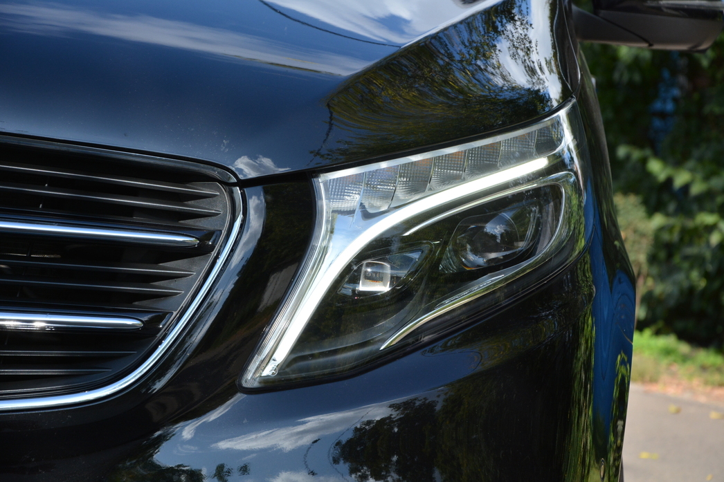 Похожие мысли, судя по всему, посещают большинство тех, кто смотрит на Mercedes V-klasse со стороны. Характерный профиль, четкие линии выштамповок на боковинах, рельефный капот, хитроумный рисунок светодиодов в фарах головного света и, разумеется, массивная трехлучевая звезда на «морде» — все настраивает на серьезный и деловой лад в духе «человека в футляре».