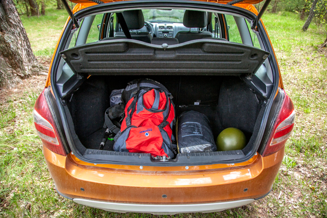 Оправдывает ли Granta Cross звание «универсал» с точки зрения перевозки грузов? Пожалуй, лишь частично. Размеры багажного отделения, прямо скажем, невыдающиеся для подобного класса автомобилей — 355 литров. К слову, у той же Skoda Fabia Combi 2010 модельного года было 505 литров. Впрочем, как оказалось, и этого хватает на сумки из супермаркета, и на рюкзак с походными вещами, а также палатку. И еще даже осталось место.