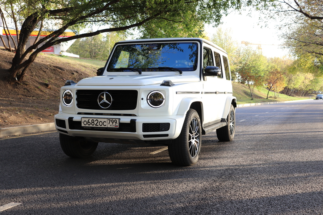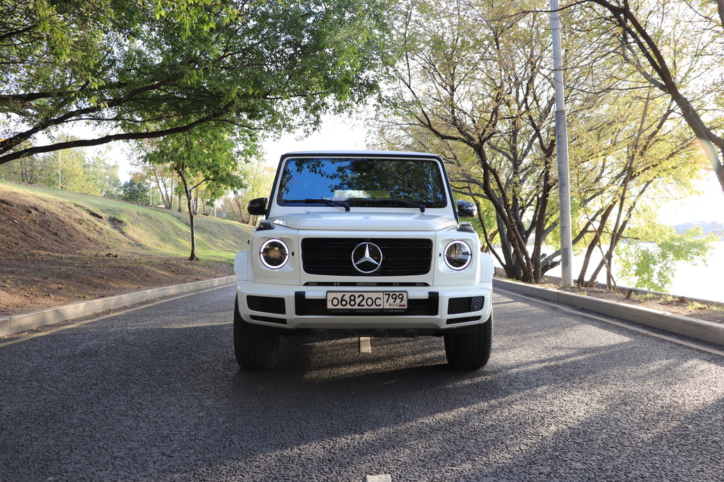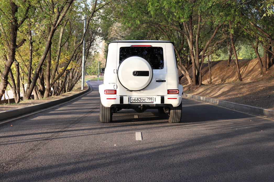 G 500 технически близок к топовой версии, но, скажем так, в нем всего «в меру». Он спокойнее выглядит: нет торчащих из-под порога выхлопных труб, колесные диски на дюйм меньше, решетка радиатора — как на классических «Геликах». Вот и хорошо. И так понятно, что покупатель такого автомобиля достиг определенных высот. Но он не агрессивен — я про покупателя. Дружелюбен. Гордится происхождением — теперь уже про автомобиль. Может все тоже самое и даже чуть больше, чем его накачанный стероидами AMG-братец.