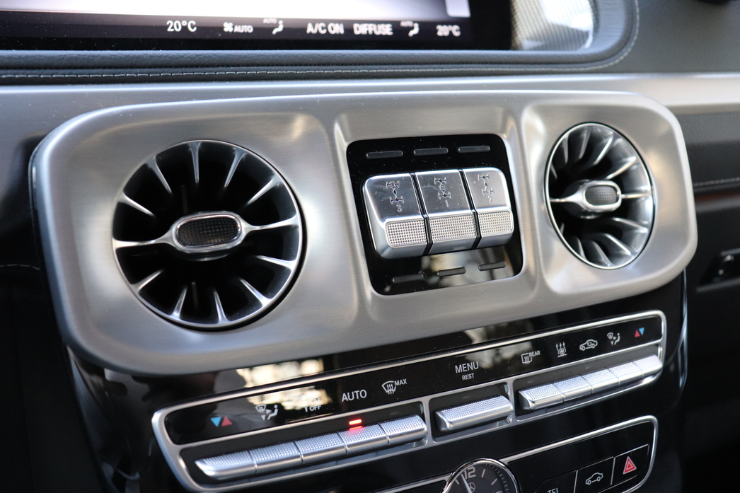 У G 500 в наличии есть все три внедорожные блокировки: передний дифф, задний, межосевой. Клиренс — 241 мм — и он неизменен, поскольку пневмоподвеску в G-класс не интегрировали. Могли, но сочли, что пружины и неразрезной задний мост надежнее. Мощность 4-литрового бензинового мотора — 422 силы против 585 у G 63.