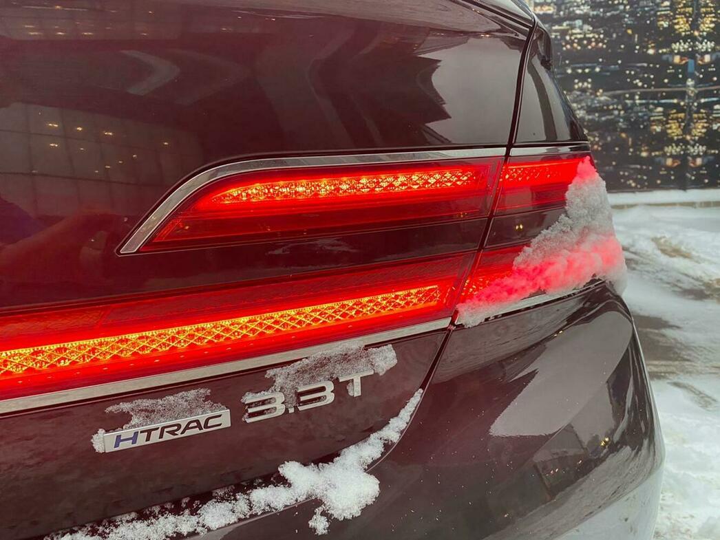 Вот и Genesis G90 пытается демонстрировать вселенной консервативный внешний вид кристаллически замороженного пафоса. Это ощущение не рушат ни оригинаьная фальшрадиаторная решетка в виде слегка сплющенного рыцарского щита, ни модные полосы светодиодов в фарах, ни огненная «ватерлиния» поперек всей кормы машины. Вроде все современно. Но и сурово-«федерально» при этом. Впрочем, слегка попривыкнув к машине, перестаешь на это обращать внимание.