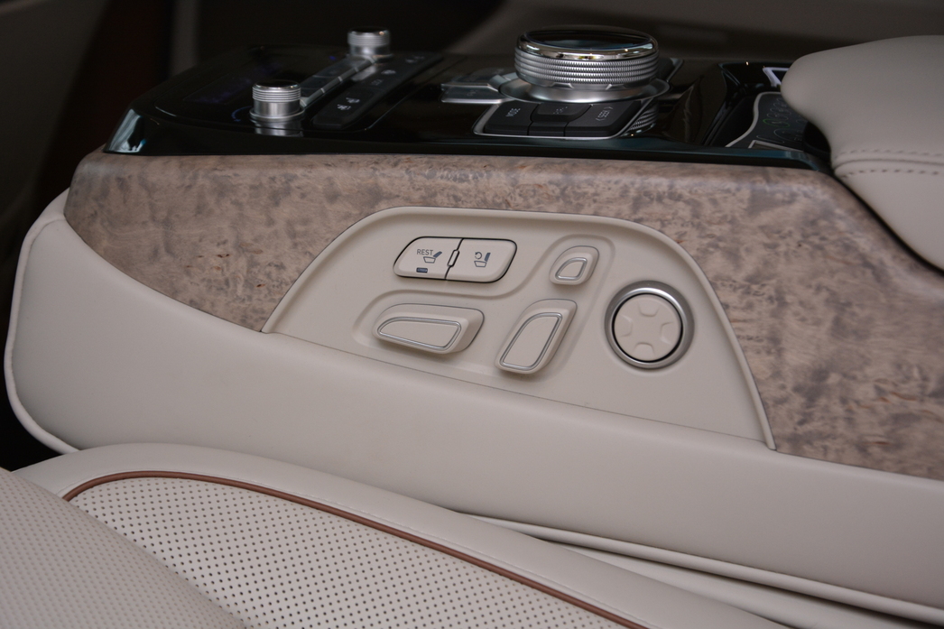 Правда, при всем при том, о всякой дорожной «мелочи» — типа крупной фракции щебенки в асфальте — машина докладывает водителю очень даже навязчиво. Возможно, это плата за недурственную управляемость, внятный руль и упорное нежелание крениться в быстрых и резких поворотах, которые демонстрирует G90. То есть, по сути своей, модель обладает вполне себе «активно-водительским», а не «диванно-пассажирским» норовом.
